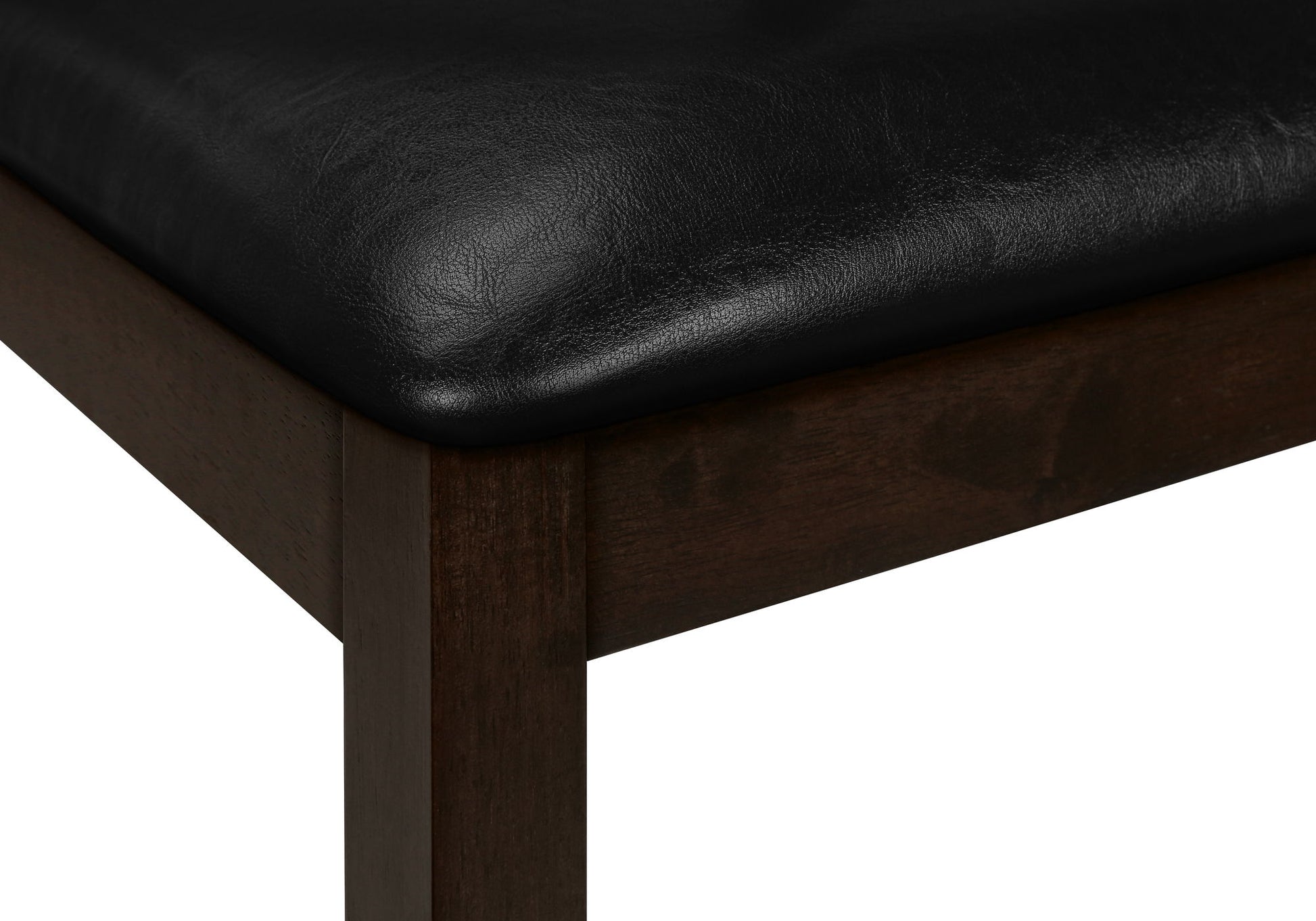 - Upholstered Seating: The chairs come with seats upholstered in black leather-look fabric, providing both comfort and easy maintenance. The upholstery is complemented by brown solid wood legs, offering a sophisticated contrast.