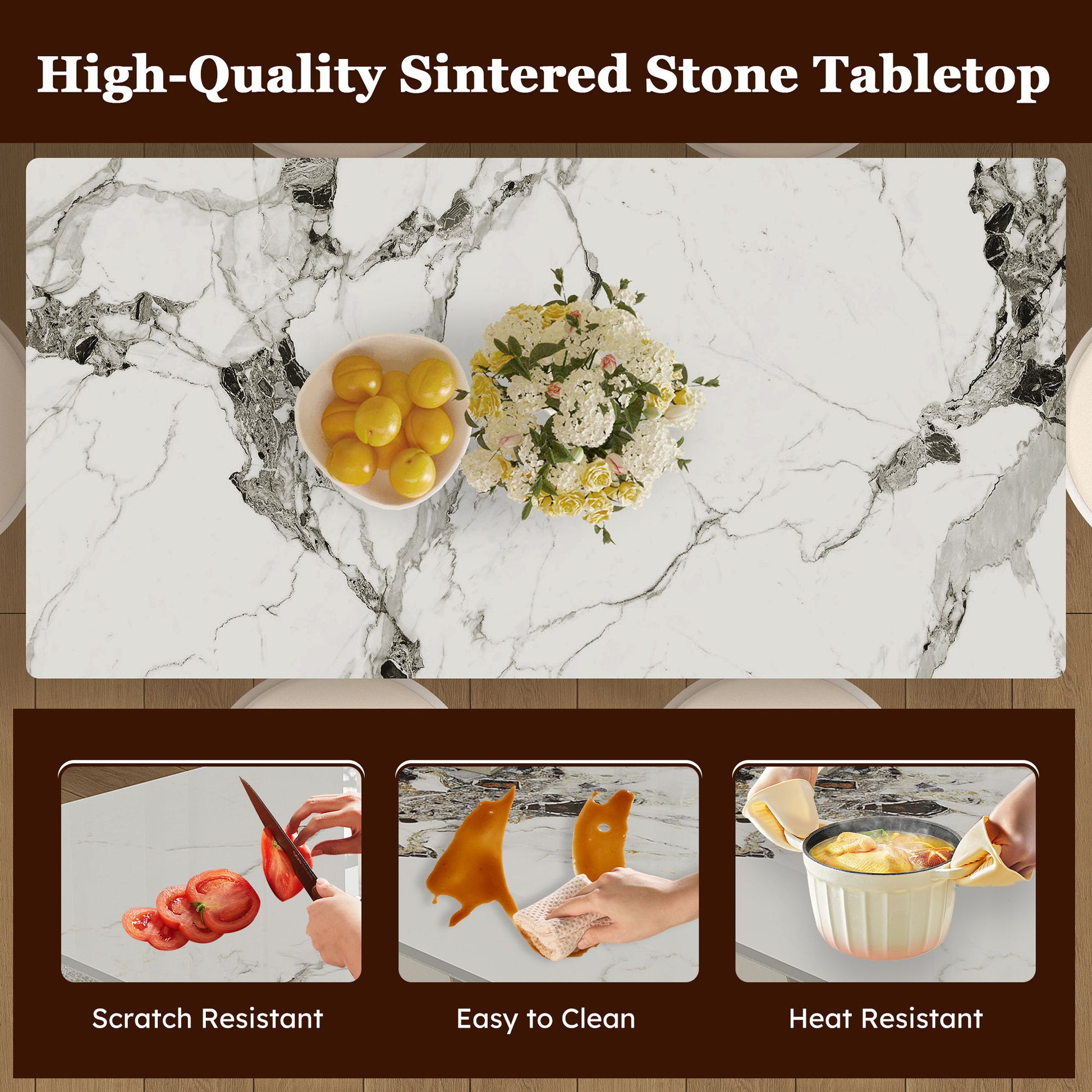 Dining Table Set With Storage, 6 Chairs For Kitchen - White