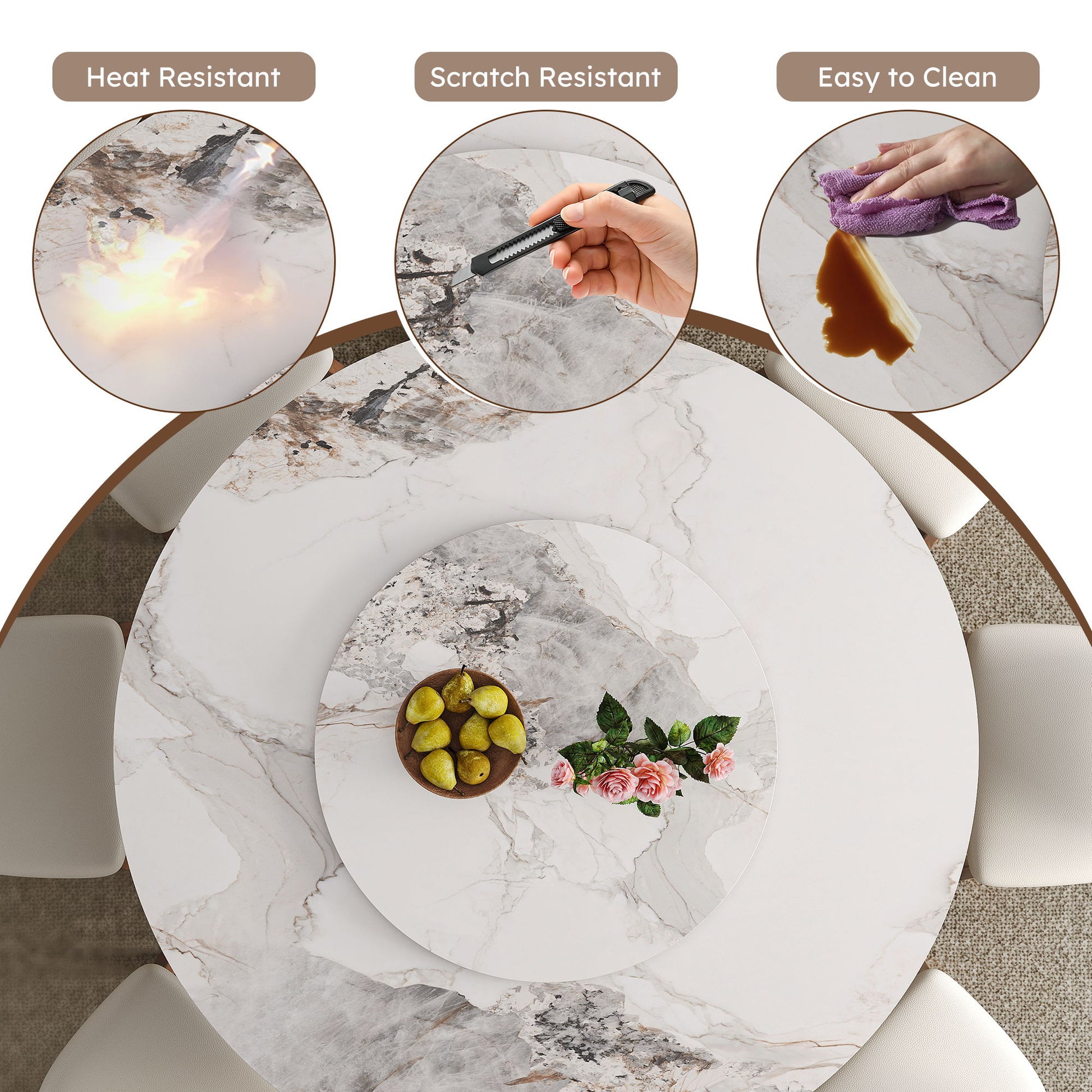 Dining Table Set, Round Turntable, Seats 6 - 8 Top With Textures - White