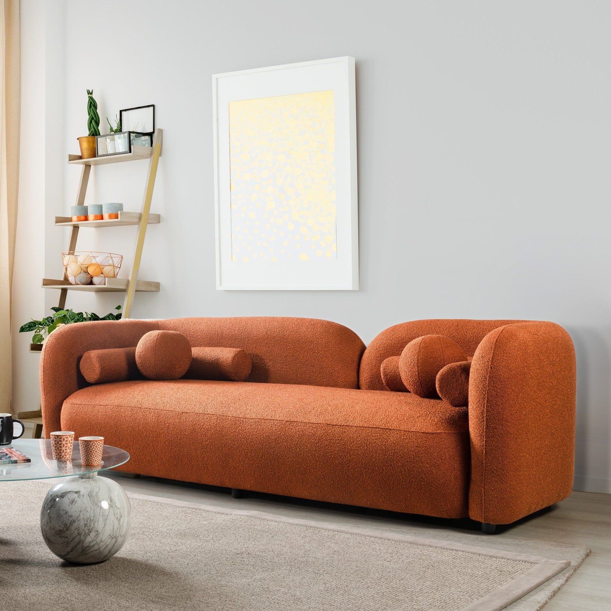 Donna - Japandi Style Boucle Sofa - Brown / Burnt Orange / Orange