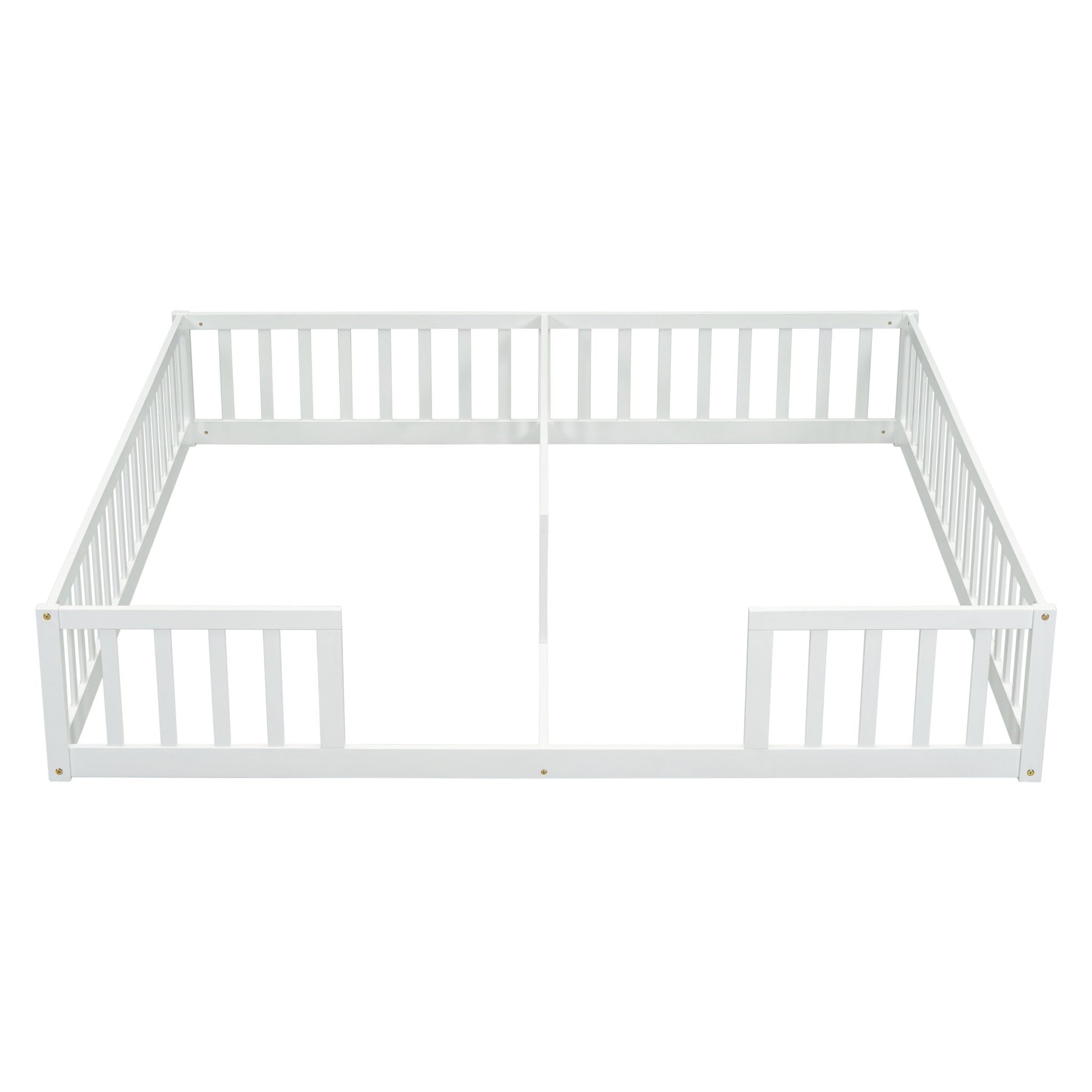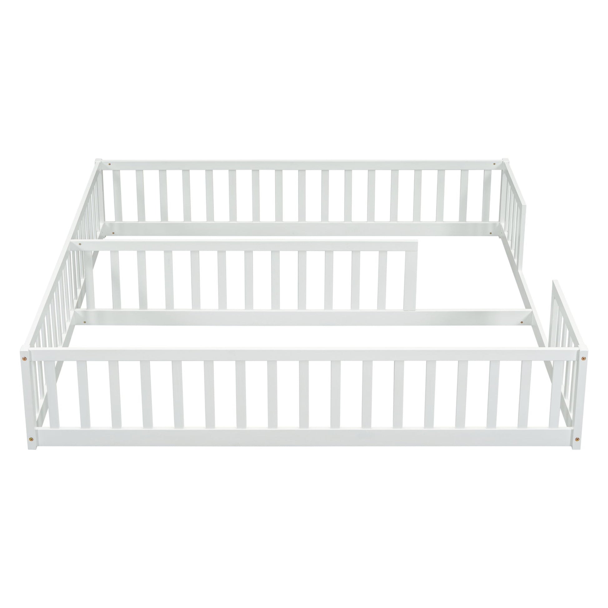 Double Twin Floor Bed With Fence, Guardrails, Without Door - White