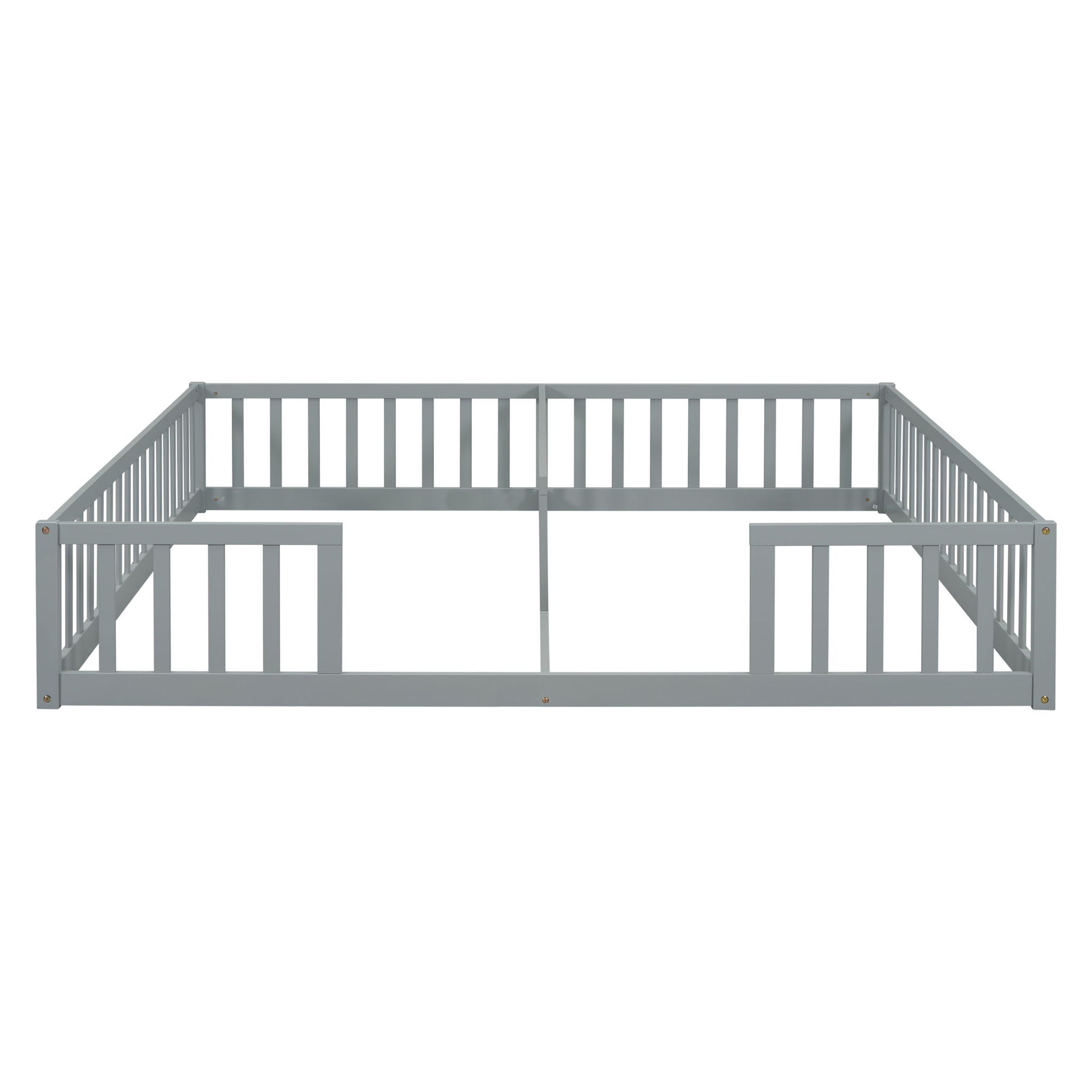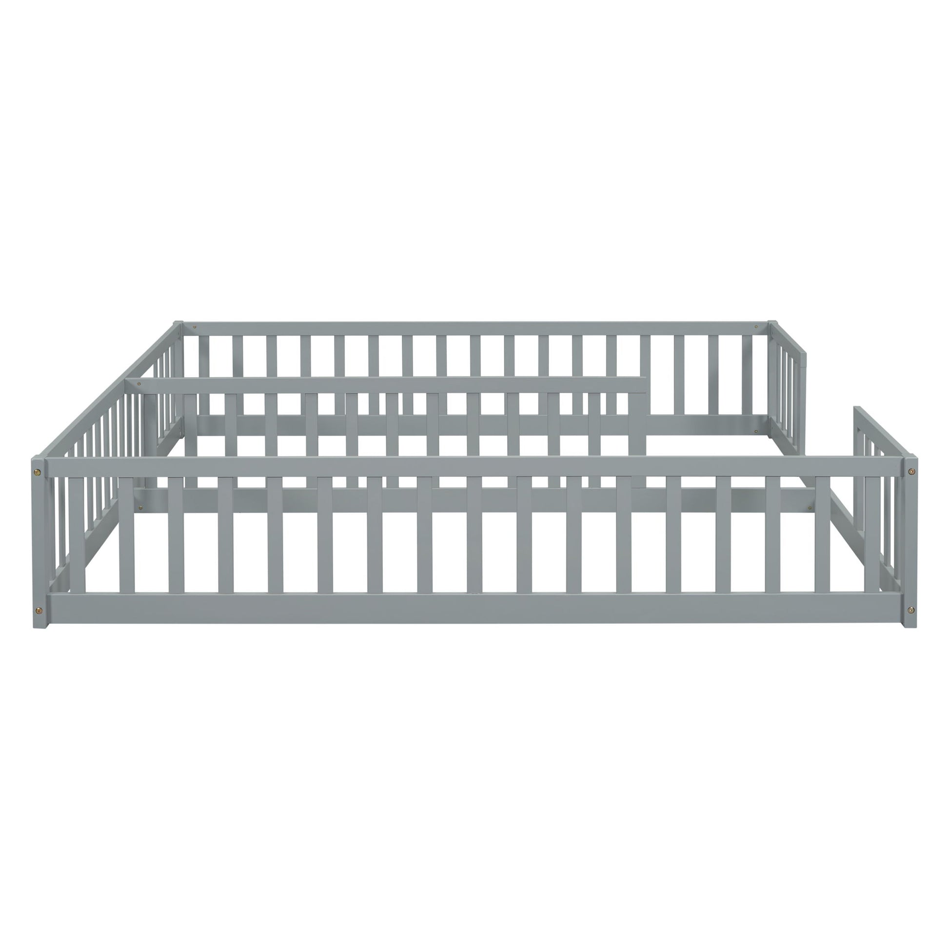 Double Twin Floor Bed With Fence, Guardrails, Without Door - Gray