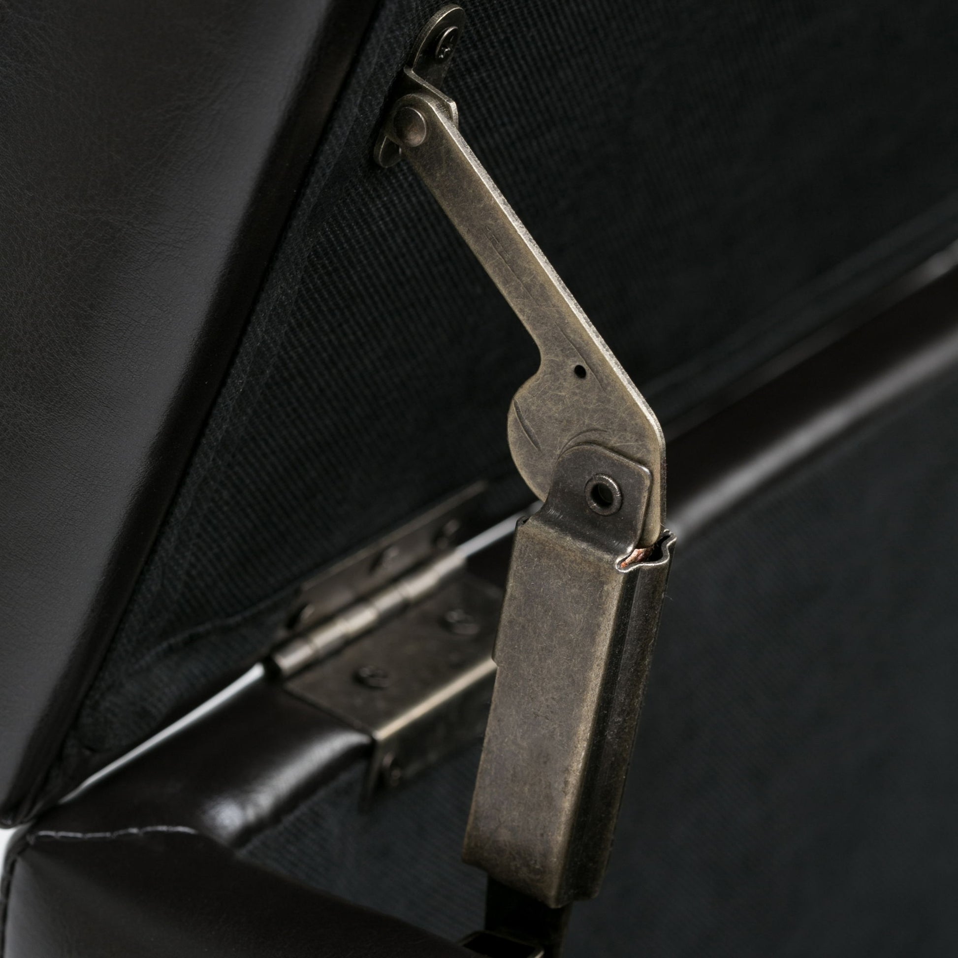 - Features large interior storage space with child safety hinge to prevent lid slamming