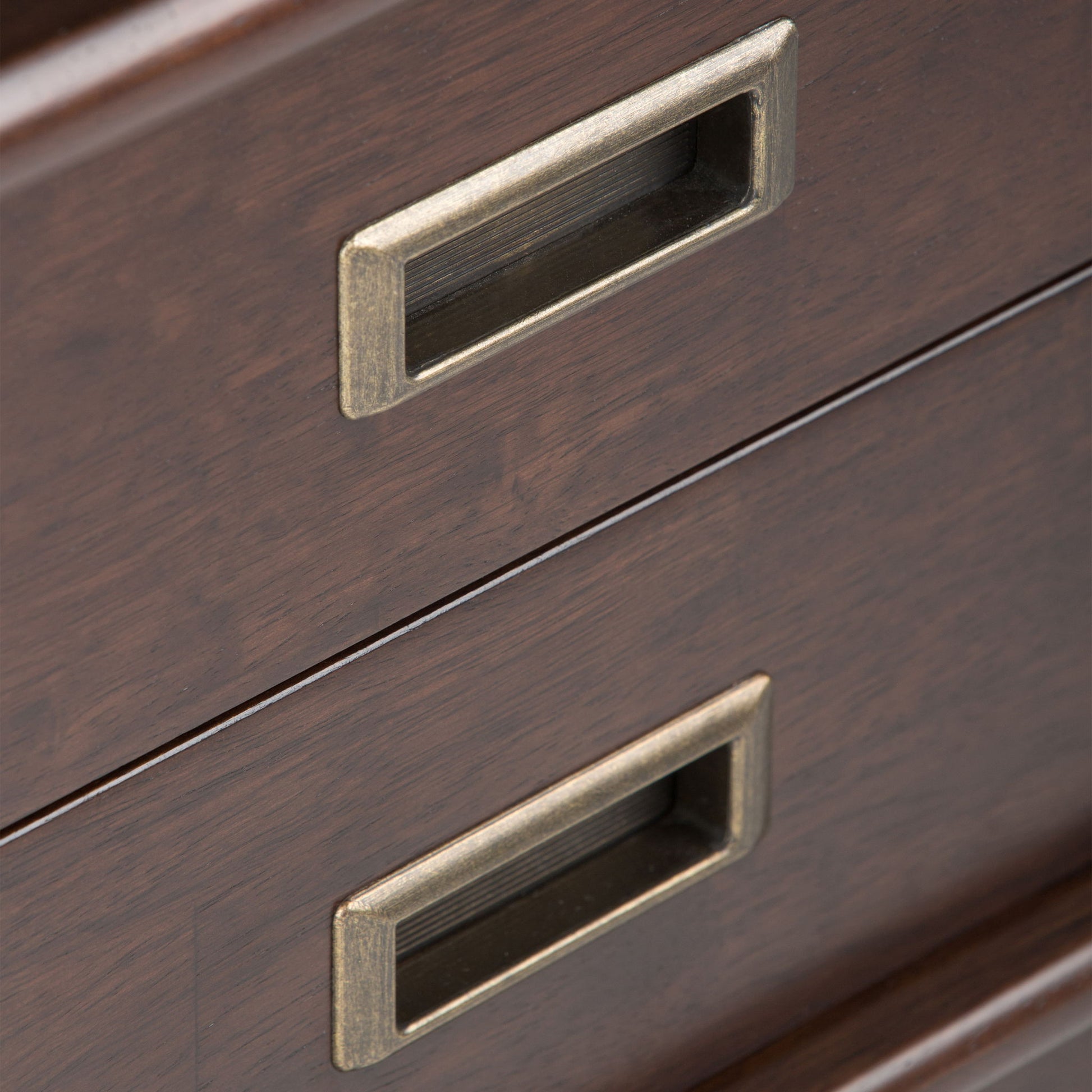 - Features a spacious drawer with metal drawer glides and recessed drawer pull, hardware finish