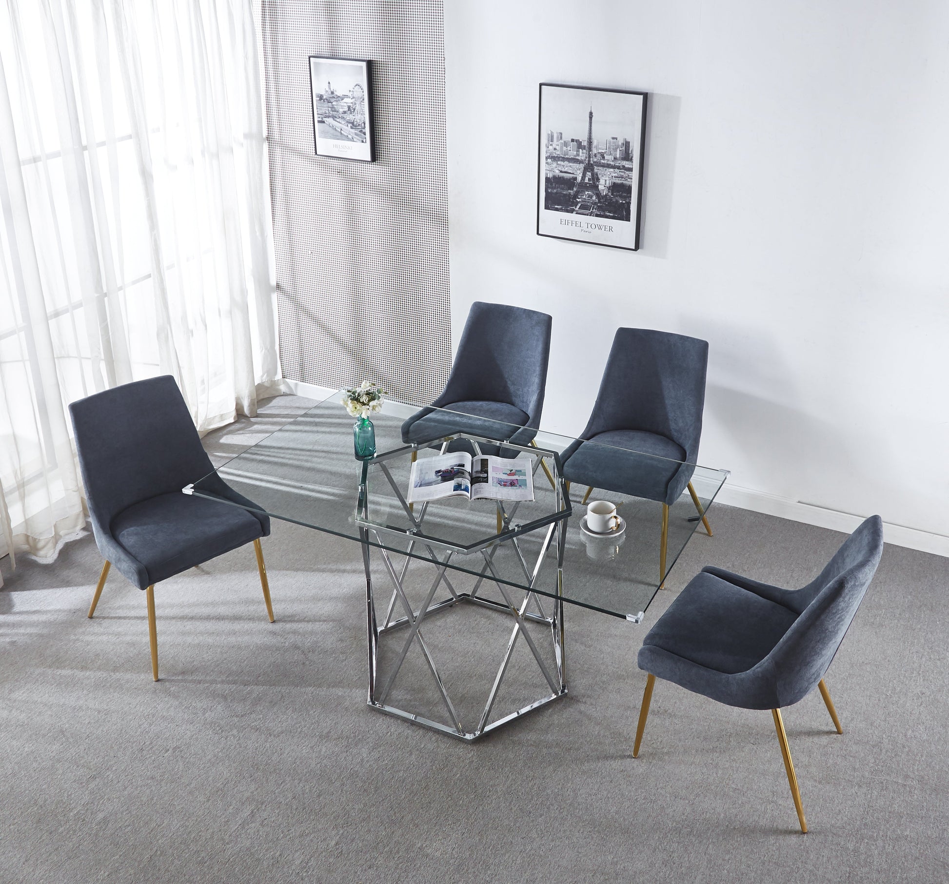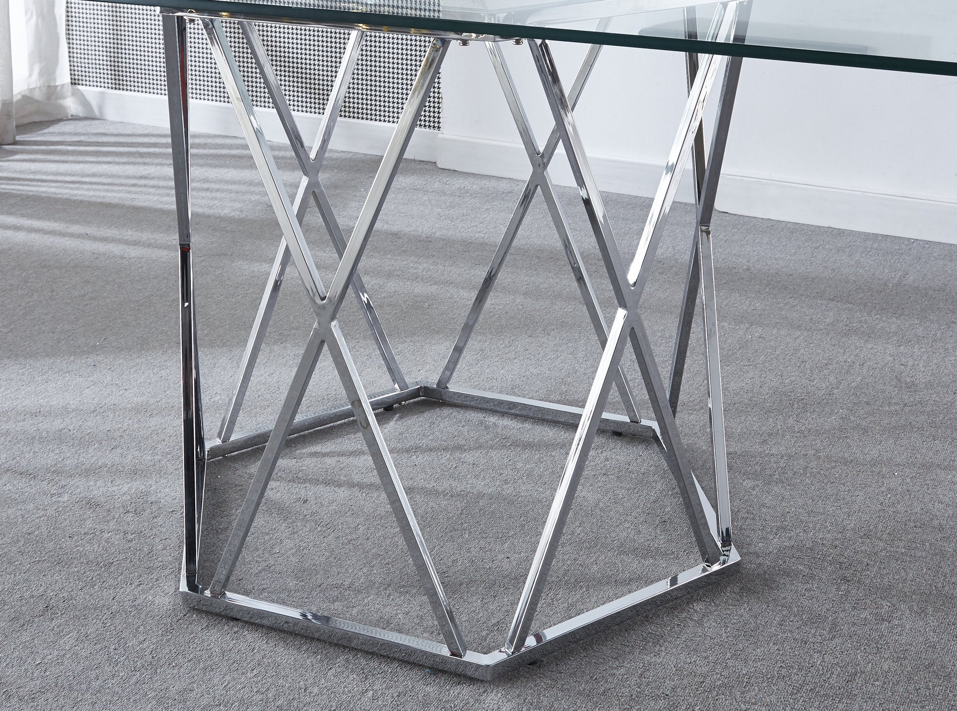 Elevate your dining space with our Elegant Rectangular Dining Table. Featuring a sleek 10mm clear tempered glass top, this table offers a modern and sophisticated look that complements any decor. The sturdy gold or silver metal base adds a touch of luxury and stability. With dimensions of 63"L x 35.4"D x 30.3"H, it provides ample space for meals and gatherings. Assembly is required to ensure secure setup.