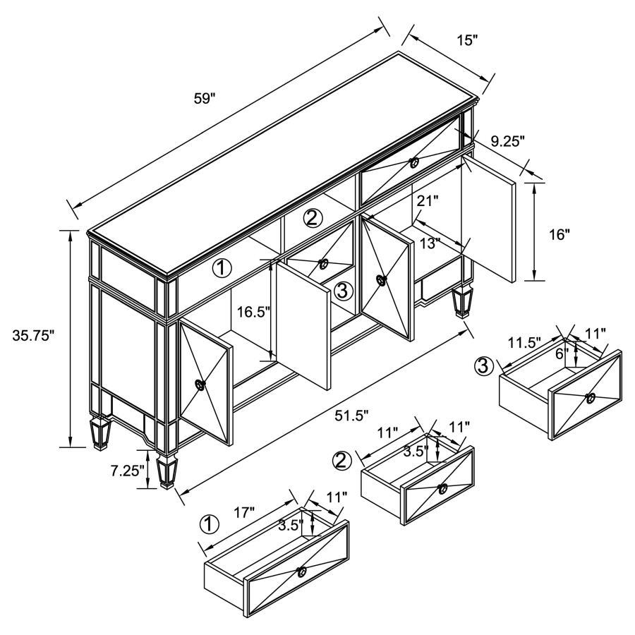 Duchess - 5-Drawer Mirrored Storage Accent Cabinet - Silver