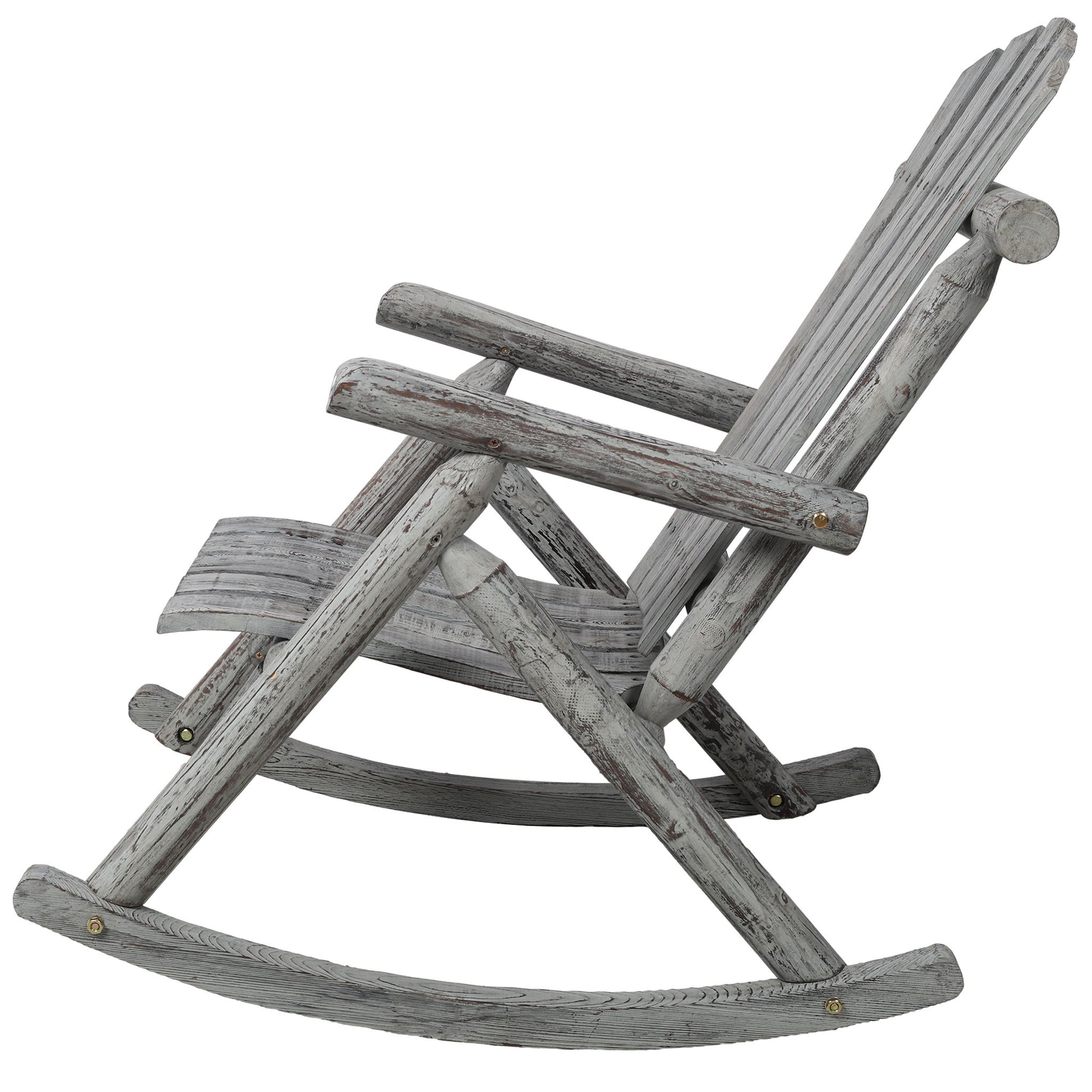 Wooden Porch Rocker Chair, Durable Wooden Porch Rocker Chair, Fir Log Rocking Chair, Patio Rockers For Outside, Garde - Light Gray
