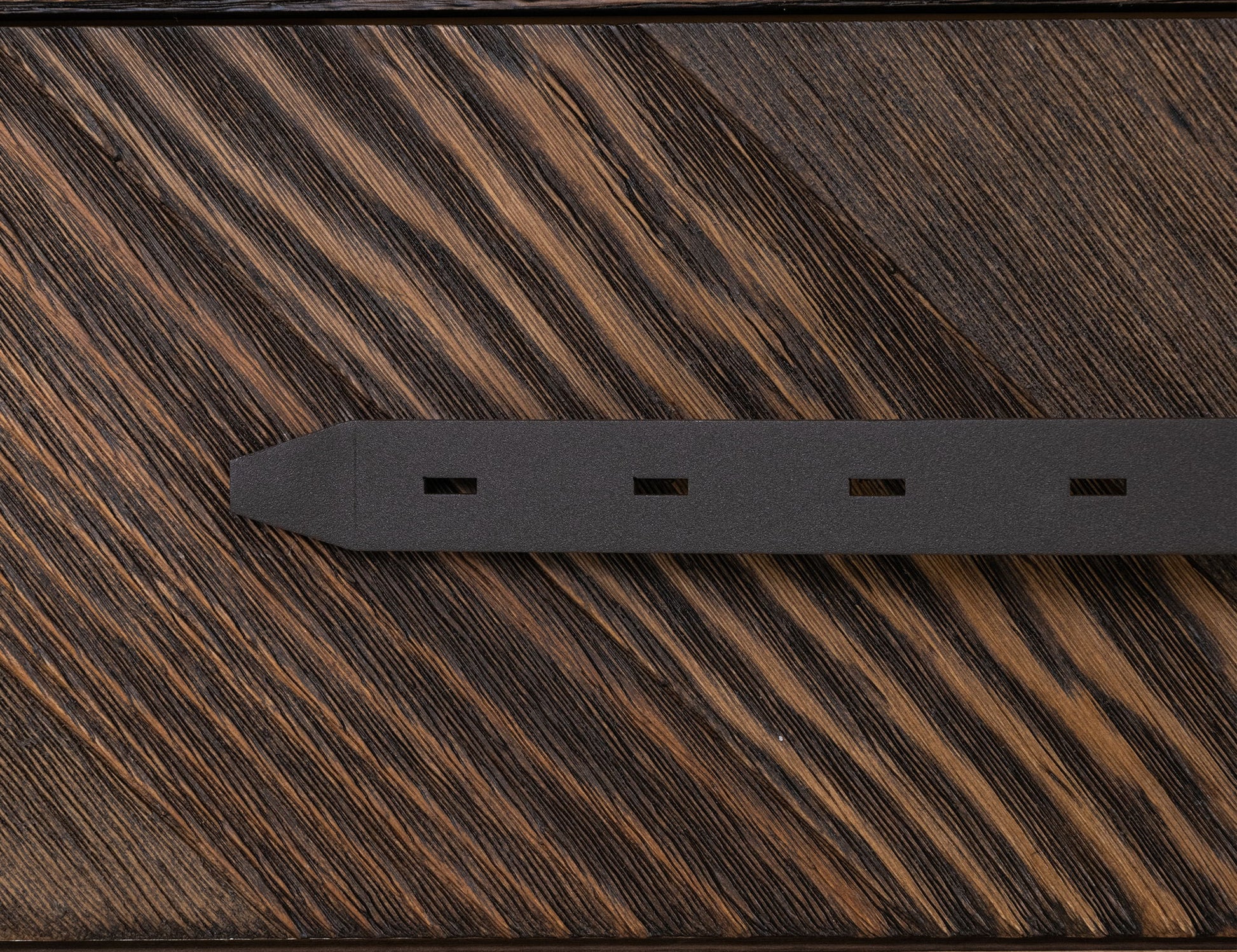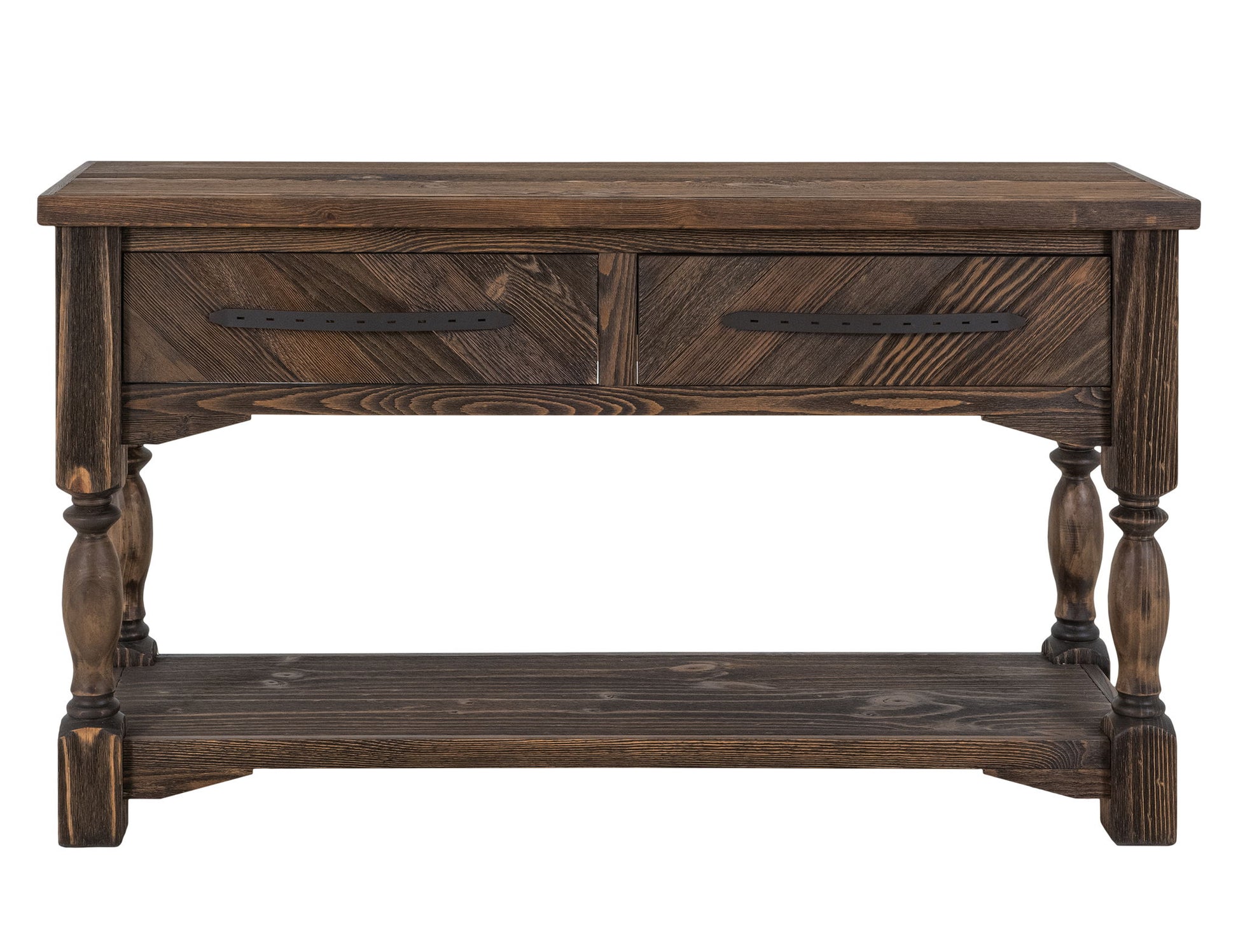 - Lightly distressed wood with a brown multi-step lacquer finish.