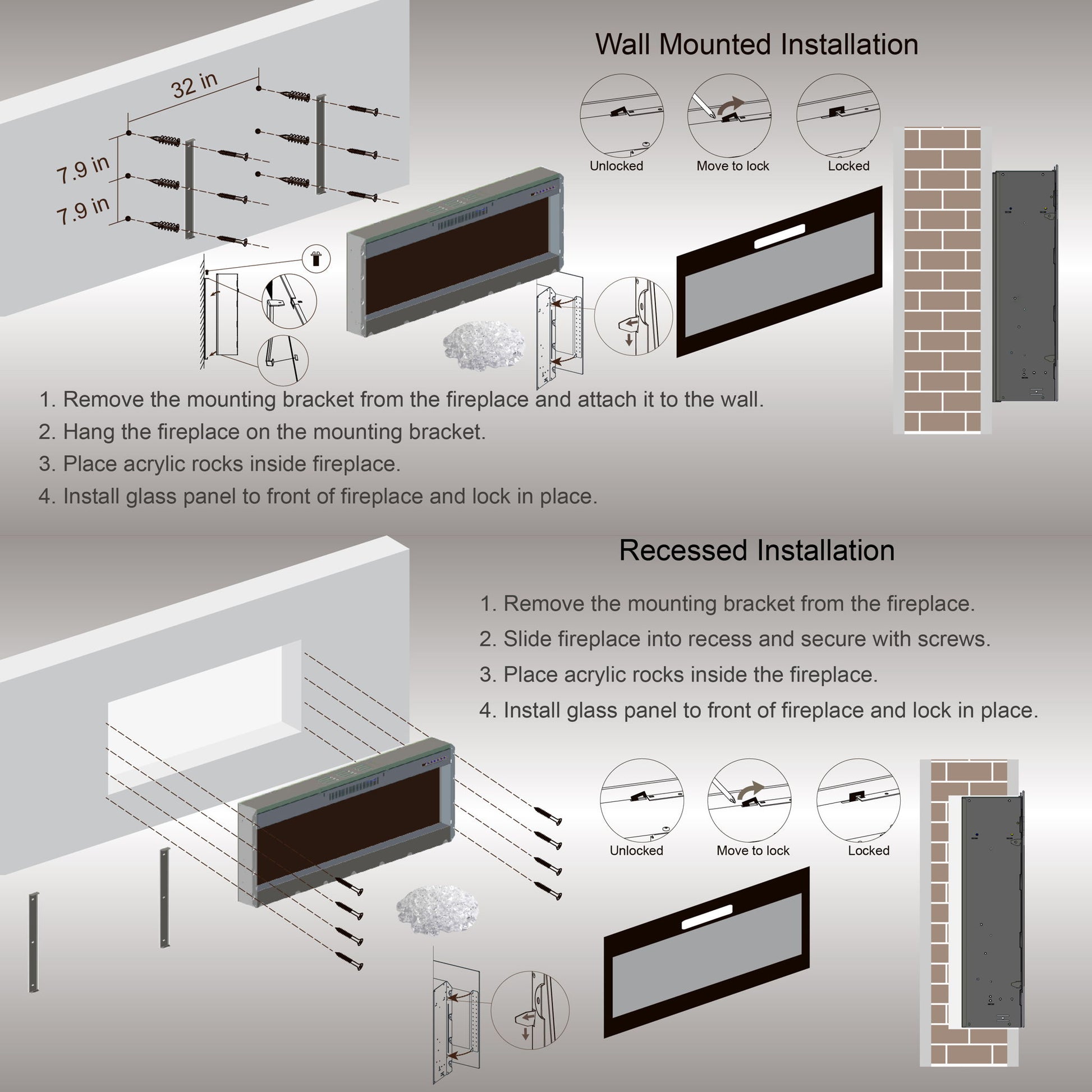 Electric Fireplace, Recessed And Wall Mounted Fireplace