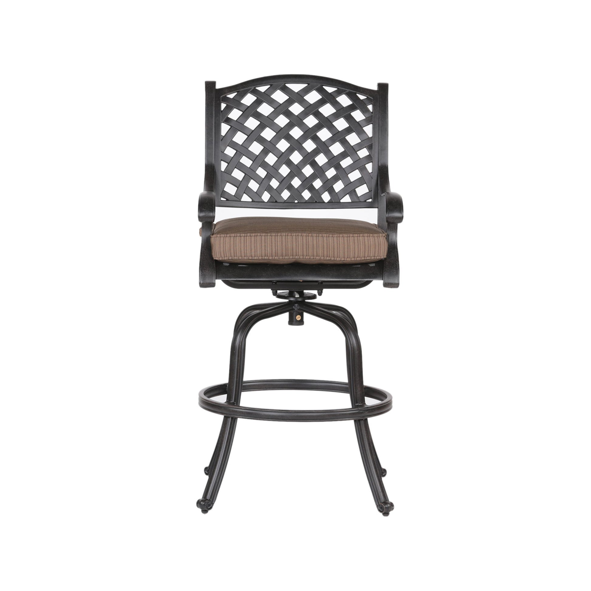 Elegant Cast Aluminum Counter Stool Set With Cushions, All Weather Design - Dark Brown