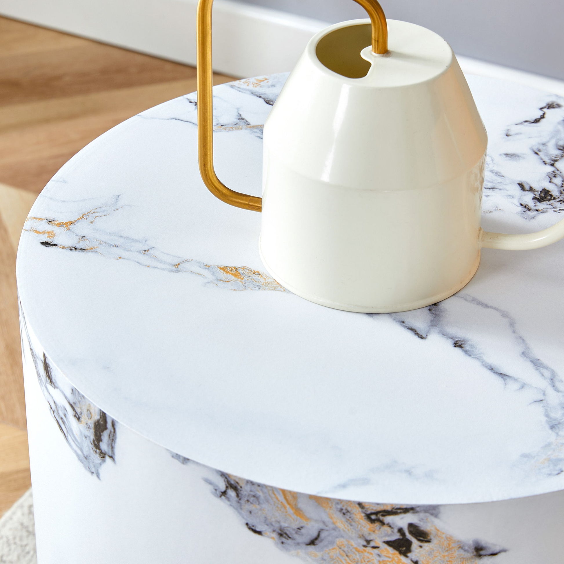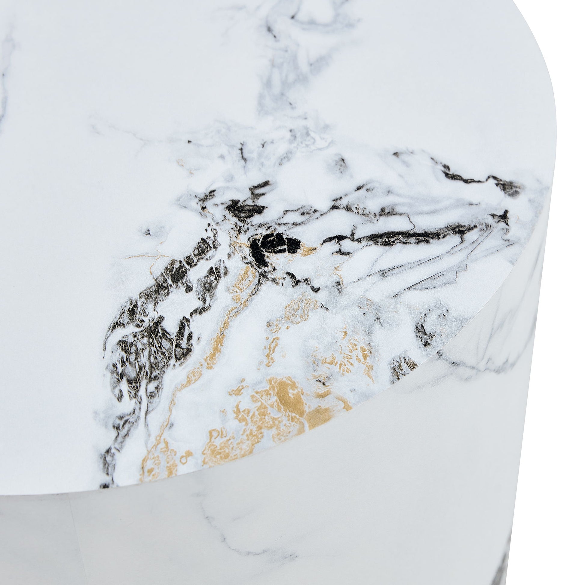 Elegant Cylindrical Table With Patterned Design For Versatile Use - White