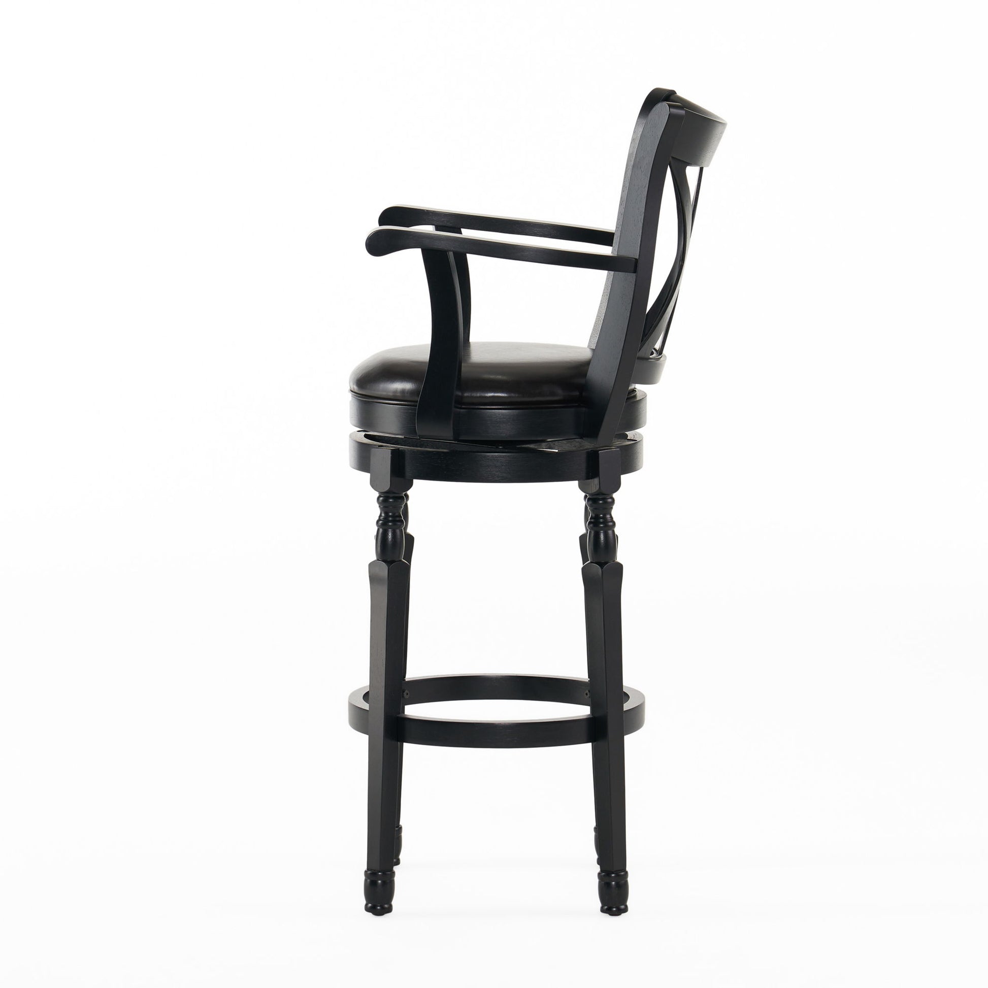 Elegant Leather Swivel Bar Stool With Arms - Espresso