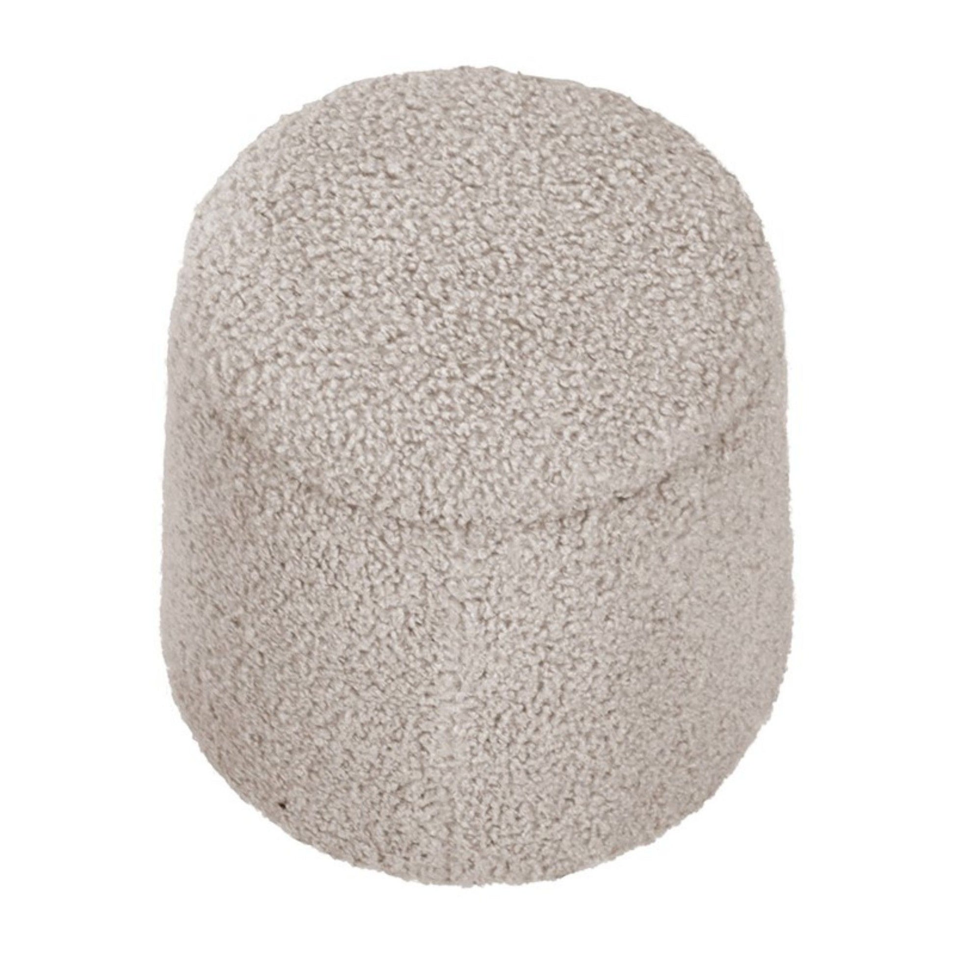 Round Storage Ottoman With High Density Foam Upholstered In Soft Fabric - Beige