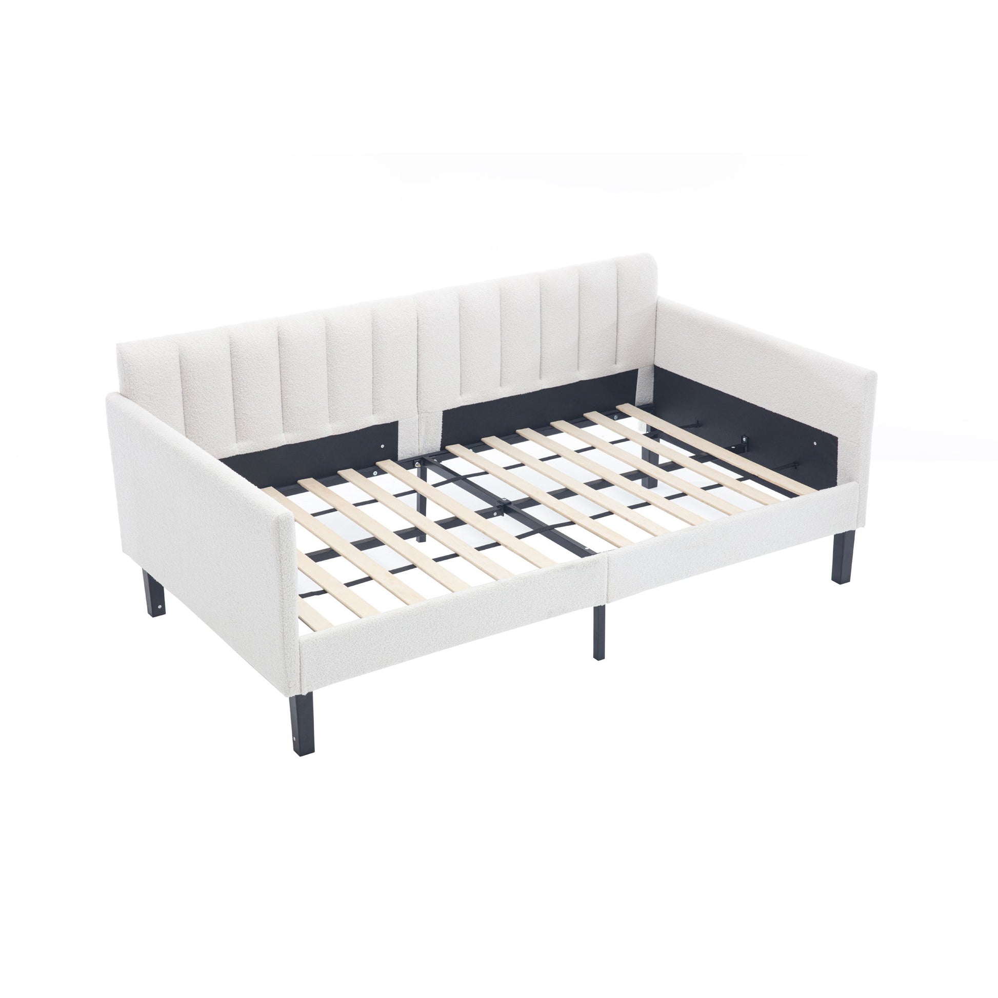 Elena - Twin Boucle Upholstered Daybed, Ribbed Tufted Backrest - Ivory
