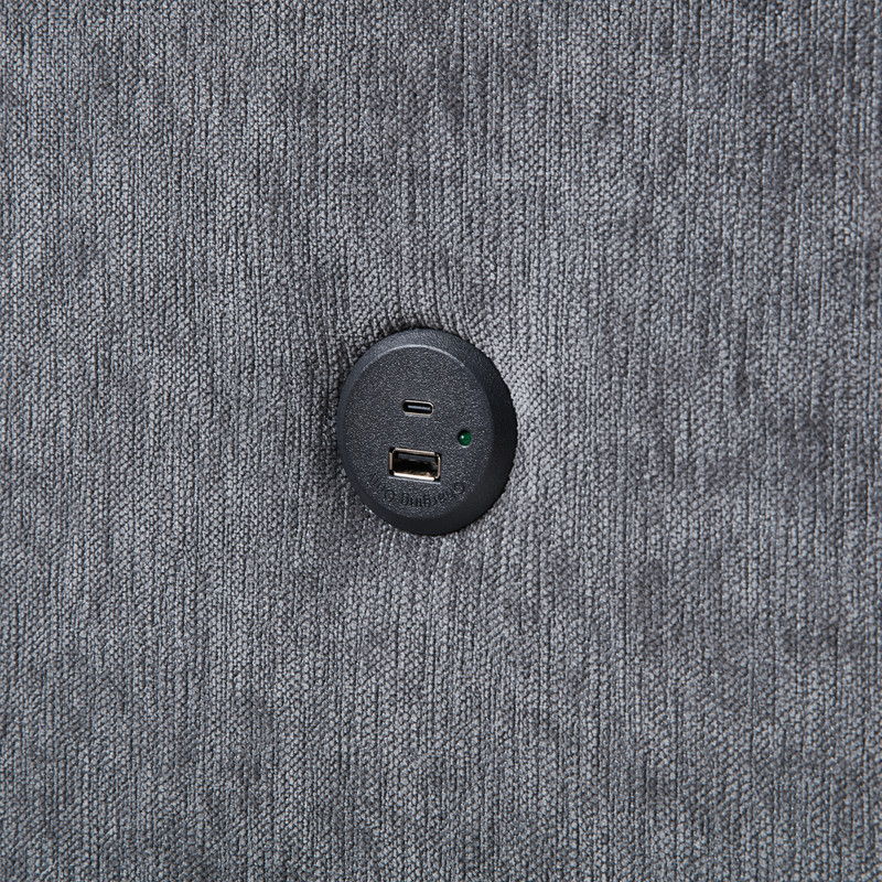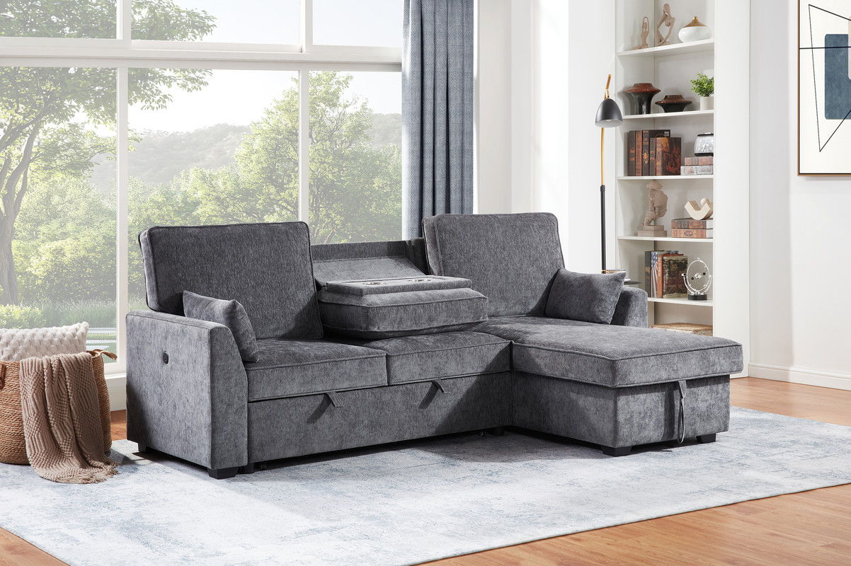 Emmy 89"W Dark Gray Fabric Sleeper Sectional Sofa with Reversible Storage Chaise, USB & USB-C Charging Ports, Cupholders, Pillows
