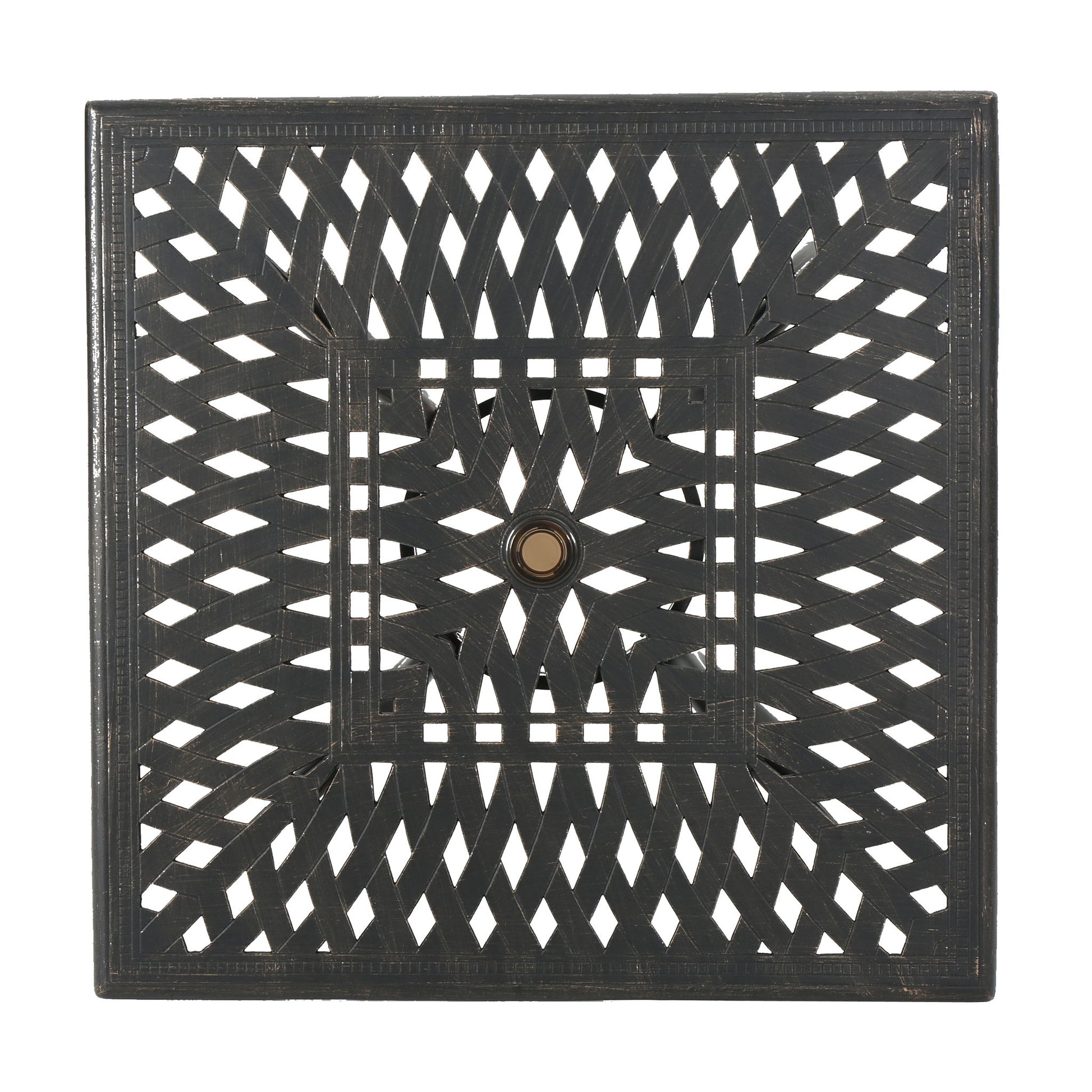- Stylish Addition to Any Patio: Our cast aluminum square dining table adds elegance to your outdoor space with its shiny copper finish, weave-style tabletop, and flared legs, making it a stylish focal point for your patio.
