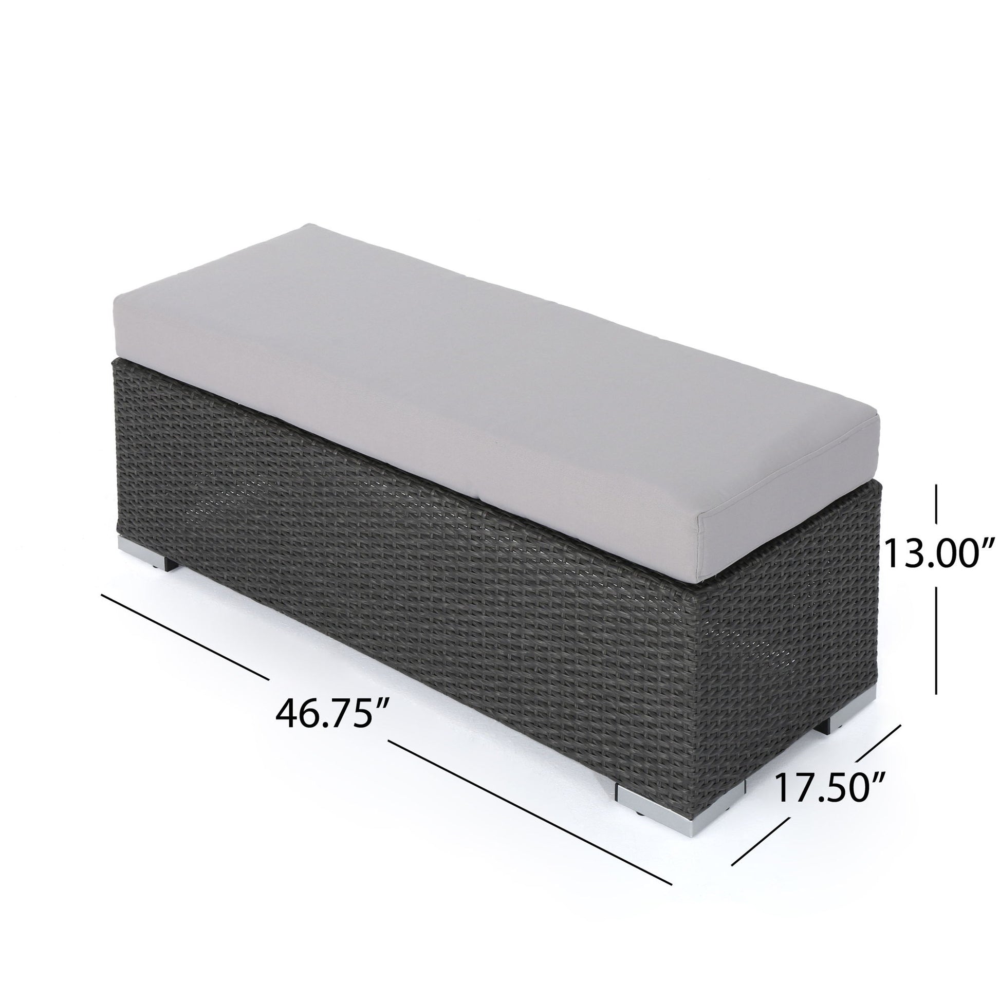 Enthrallia - Outdoor Wicker Bench With Cushion - Gray