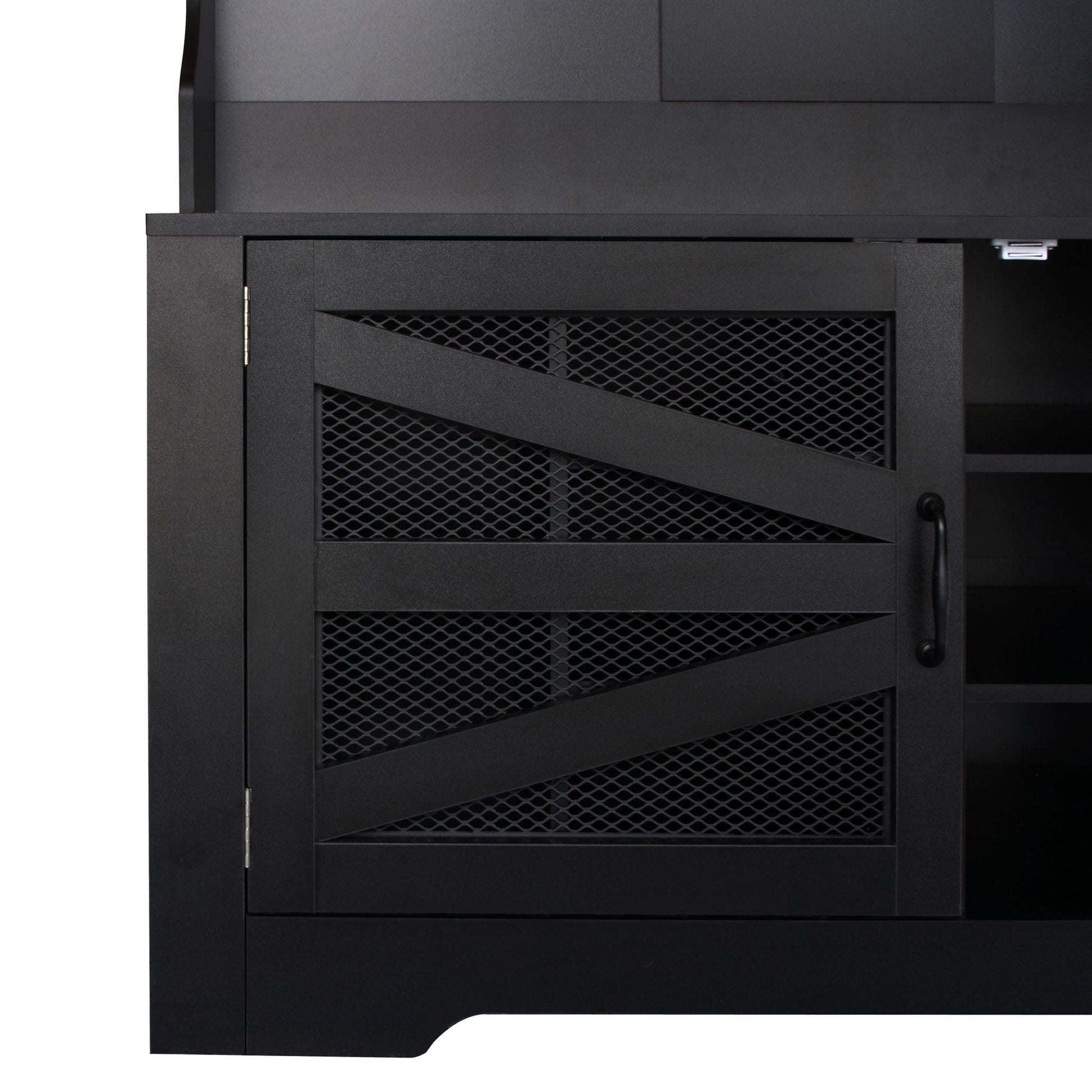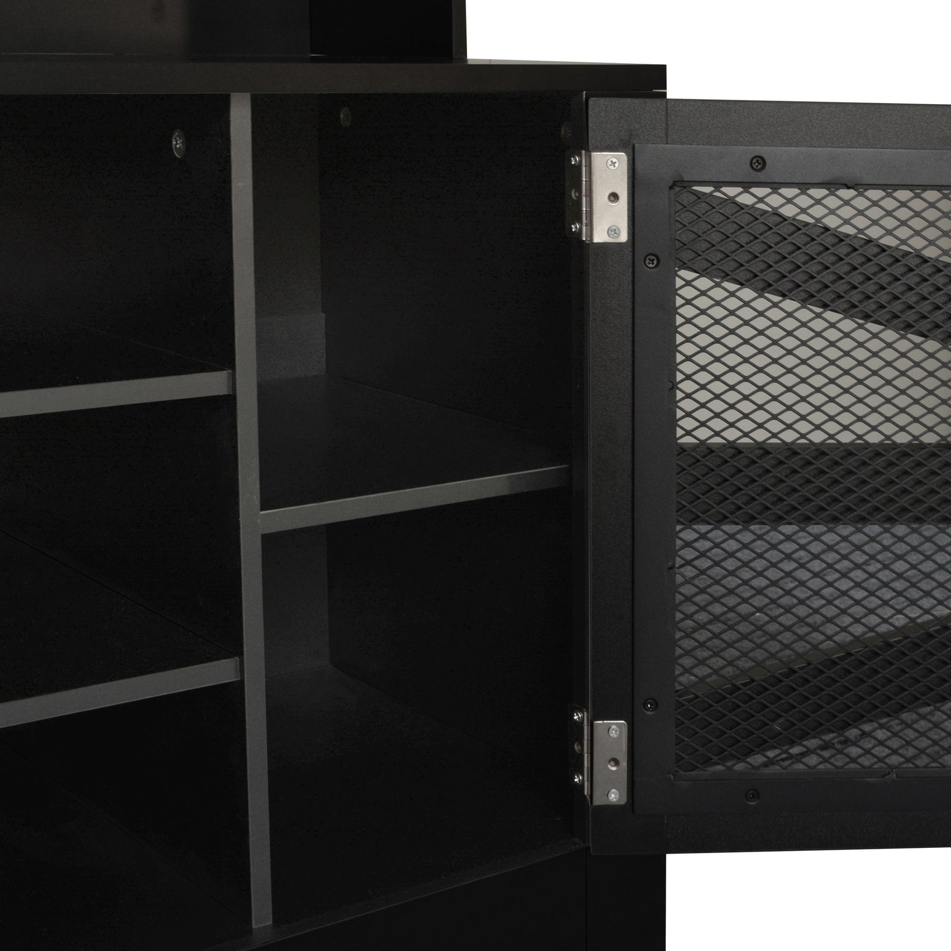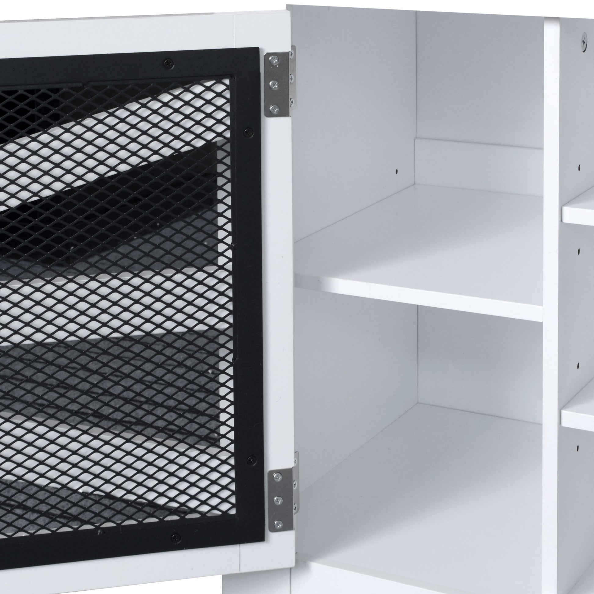 - Versatile Storage Cabinet: Equipped with a ventilated metal wire mesh door, the large capacity cabinet includes six adjustable shelves to accommodate medium-sized shoes and other items.