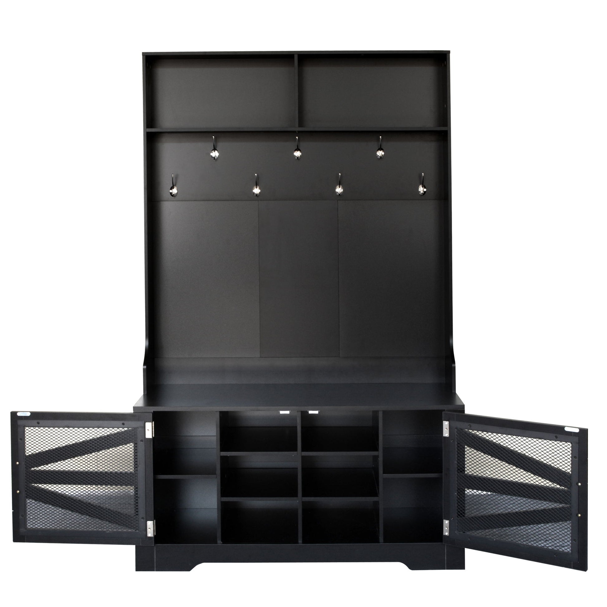 Entryway Bench With Coat Rack, 3 In 1 Design And Adjustable Shelves, Hall Tree With 7 Hooks For Entrance, Living Room - Black