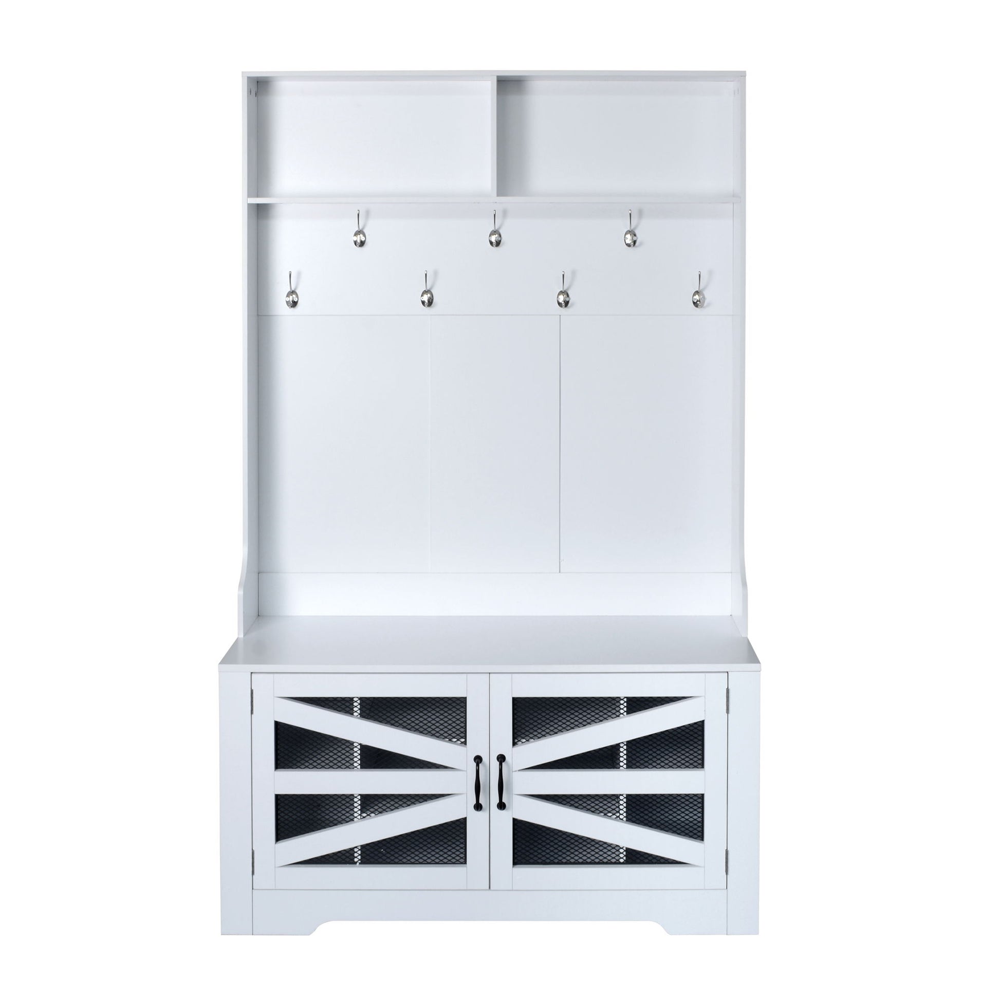 Entryway Bench With Coat Rack, 3 In 1 Design And Adjustable Shelves, Hall Tree With 7 Hooks For Entrance, Living Room - White