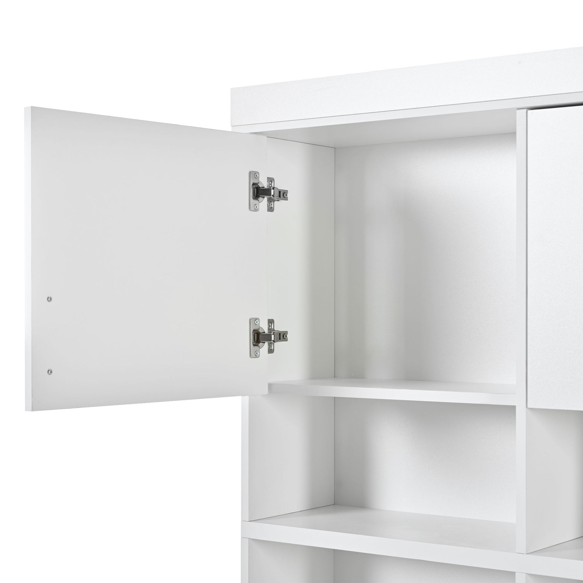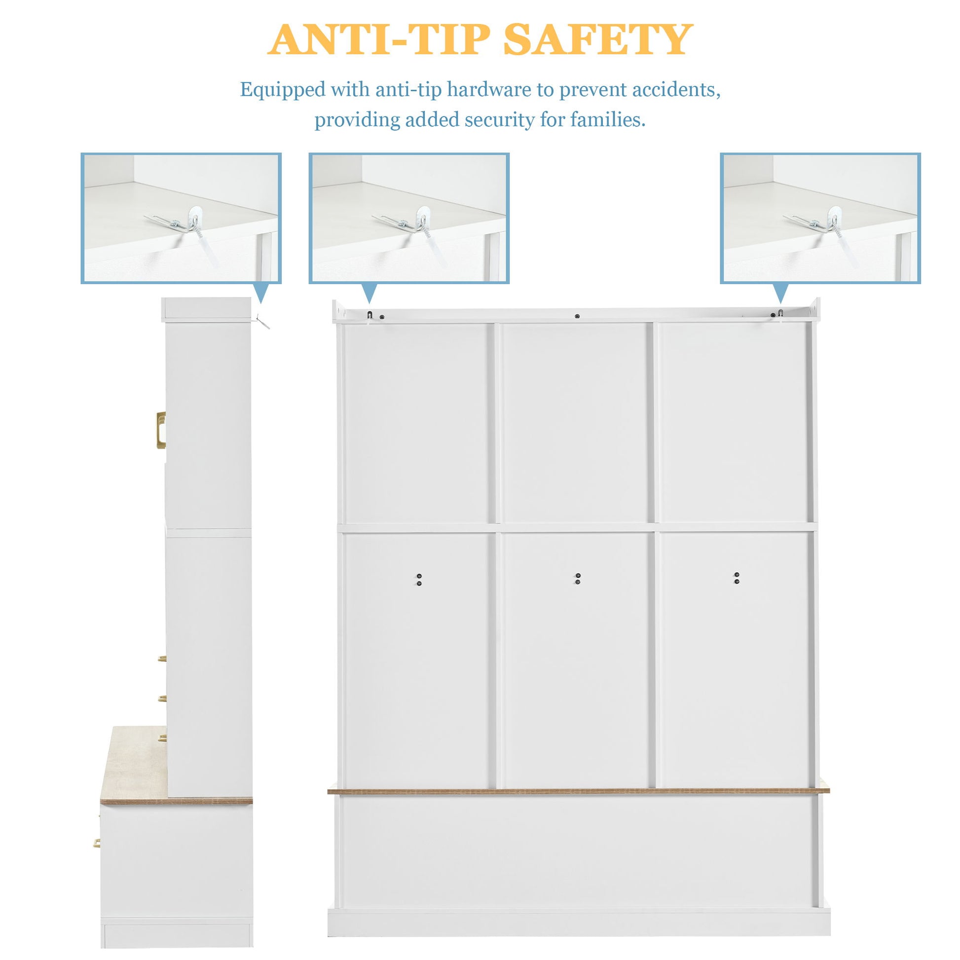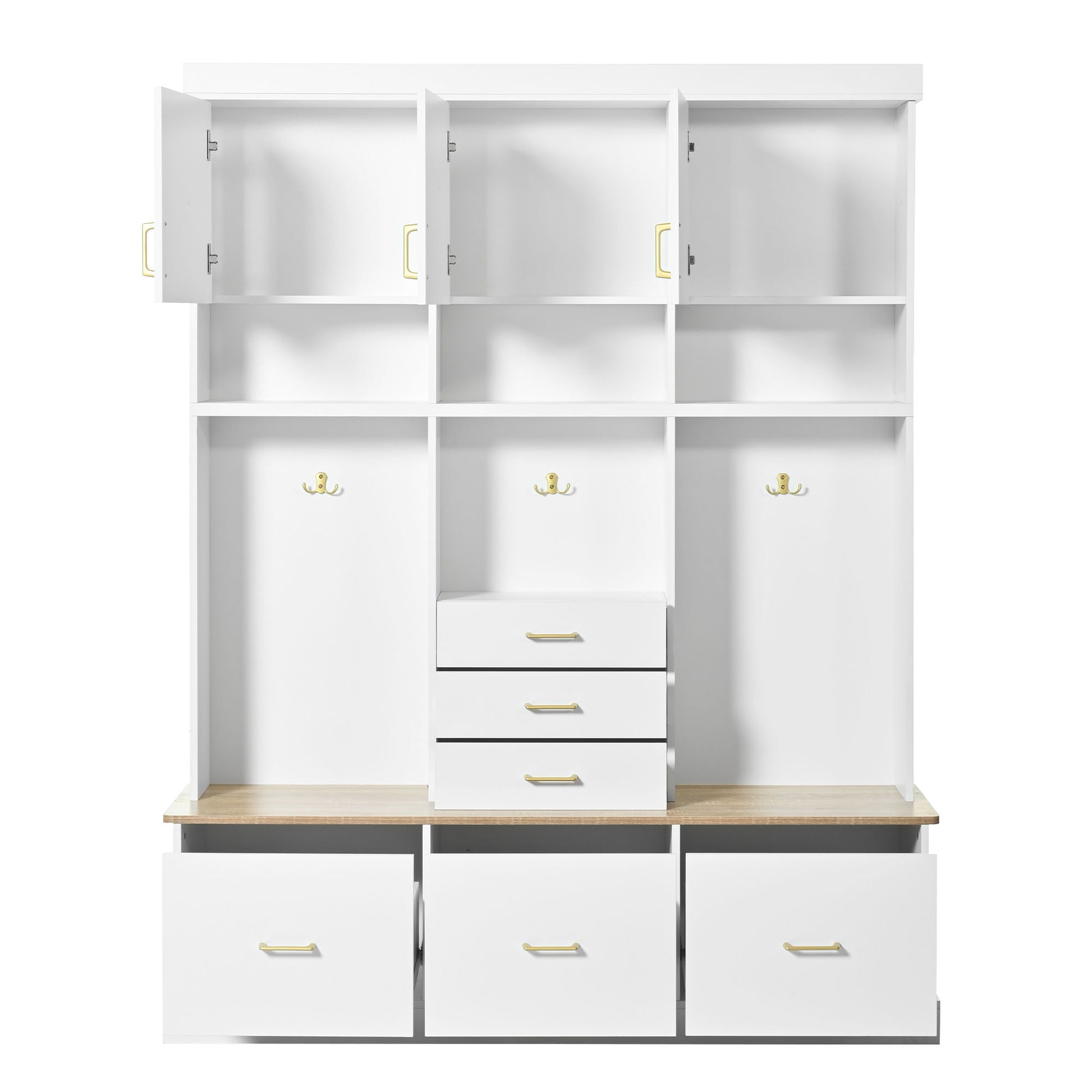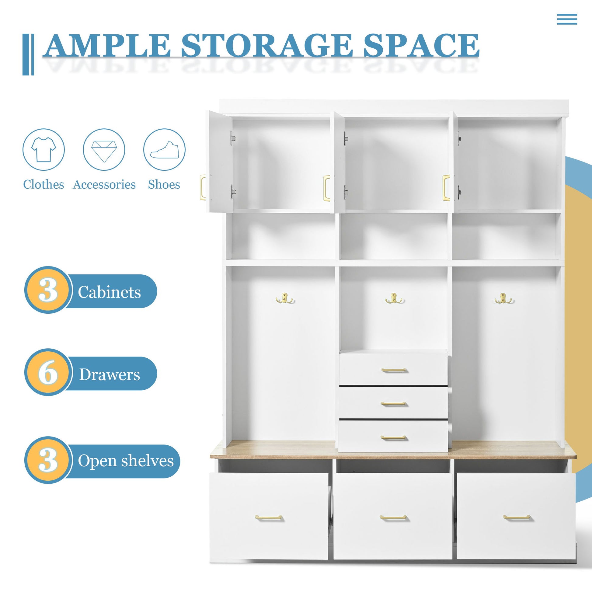 Entryway Hall Tree With Bench And Storage, 5 In 1 Coat Rack, 6 Drawers, 3 Cabinets And 3 Tier Top Storage - White