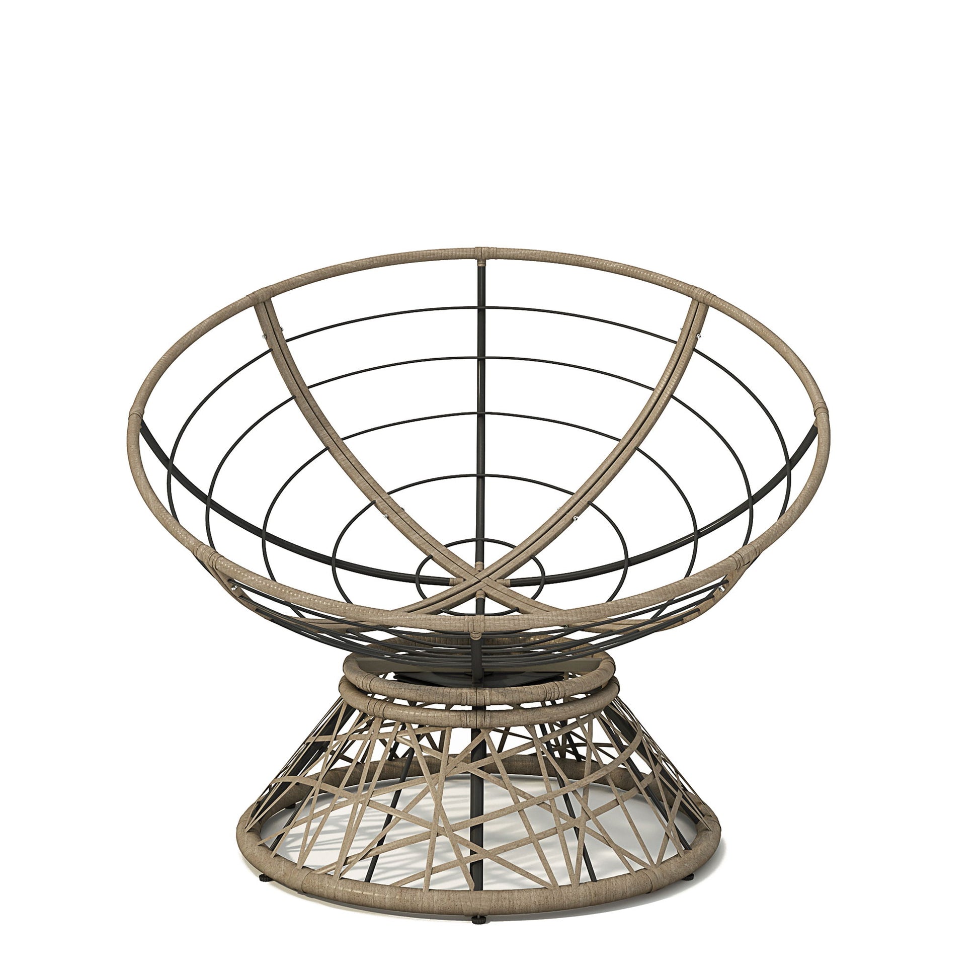 Ergonomic Wicker Chair With Cloud Thick Density Cushion, 3 Proof Cover High Capacity Iron Frame Fluid 360° Swivel - Beige / Brown
