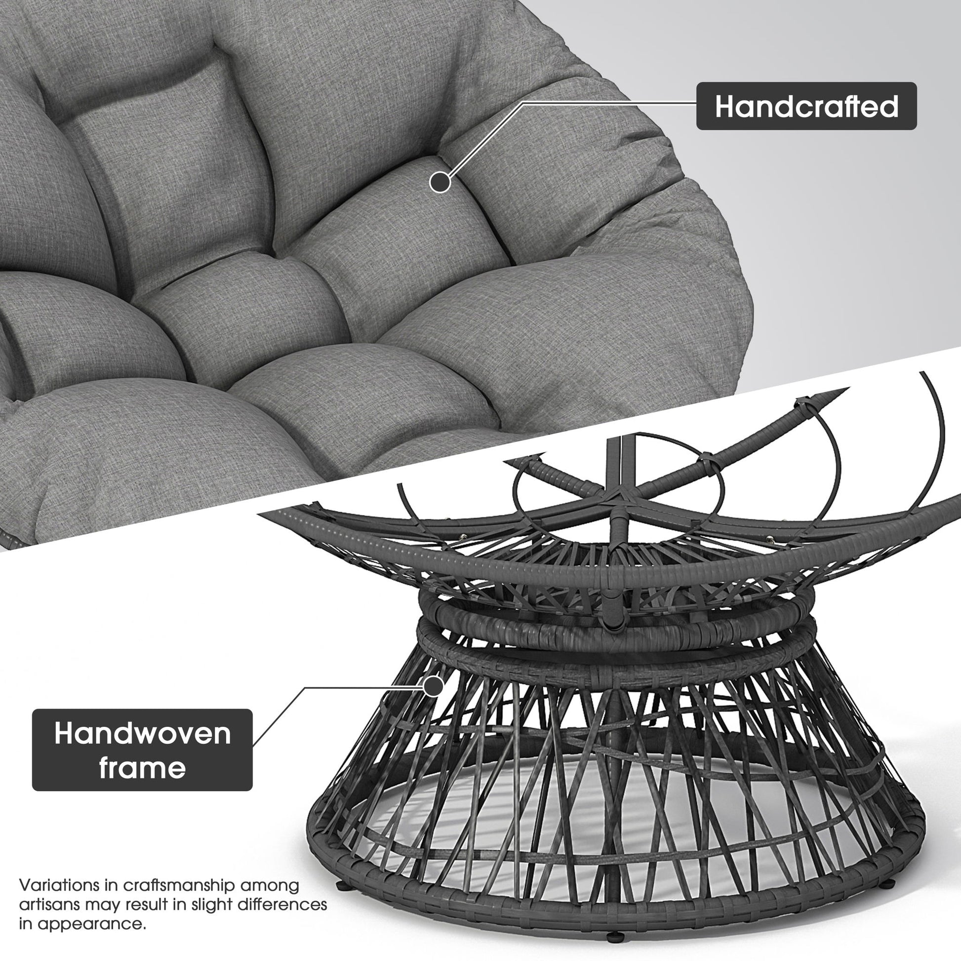 Ergonomic Wicker Chair With Cloud Thick Density Cushion, 3 Proof Cover High Capacity Iron Frame Fluid 360° Swivel - Gray