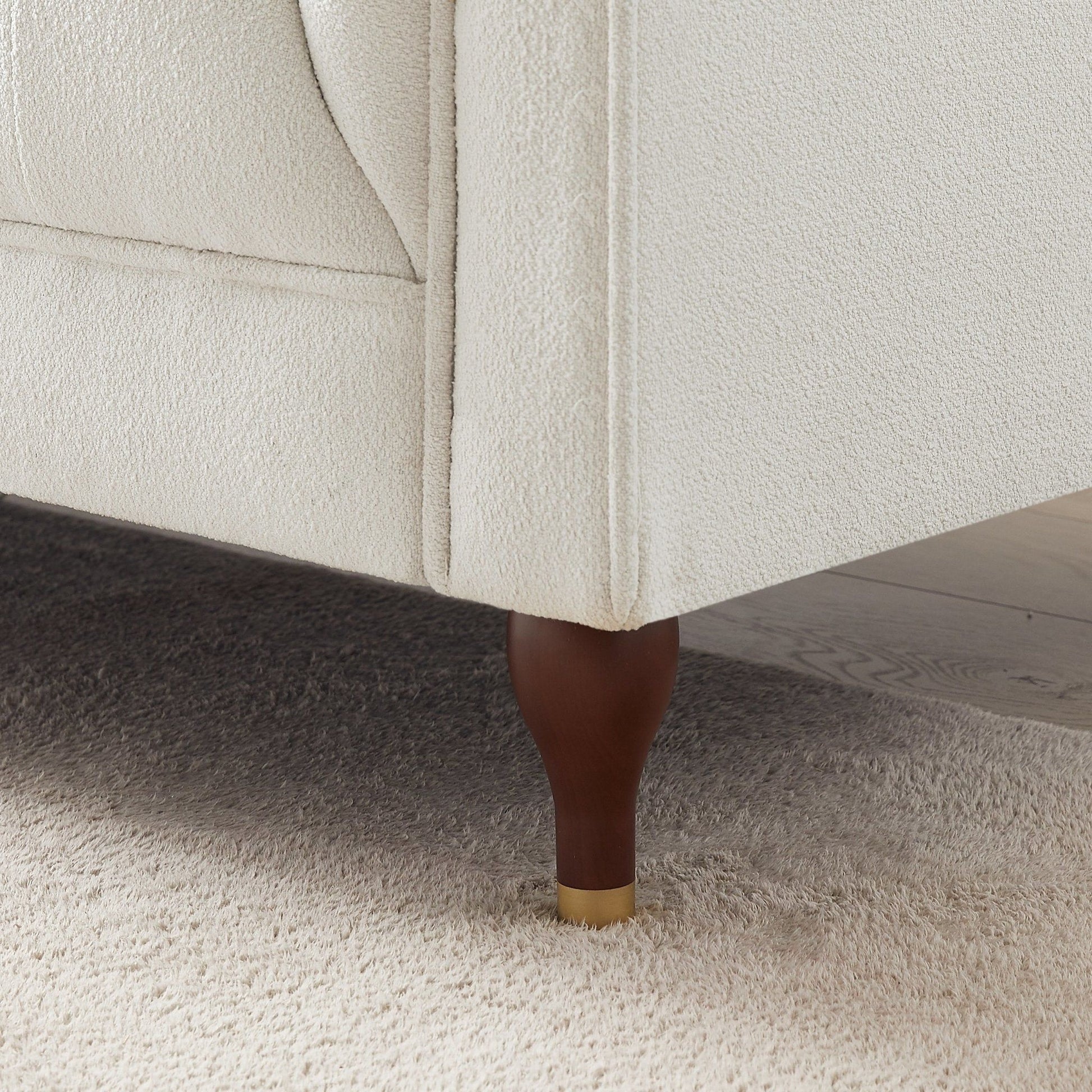 Evelyn - Mid-Century Modern Boucle Luxury Chesterfield Sofa - Ivory White / White