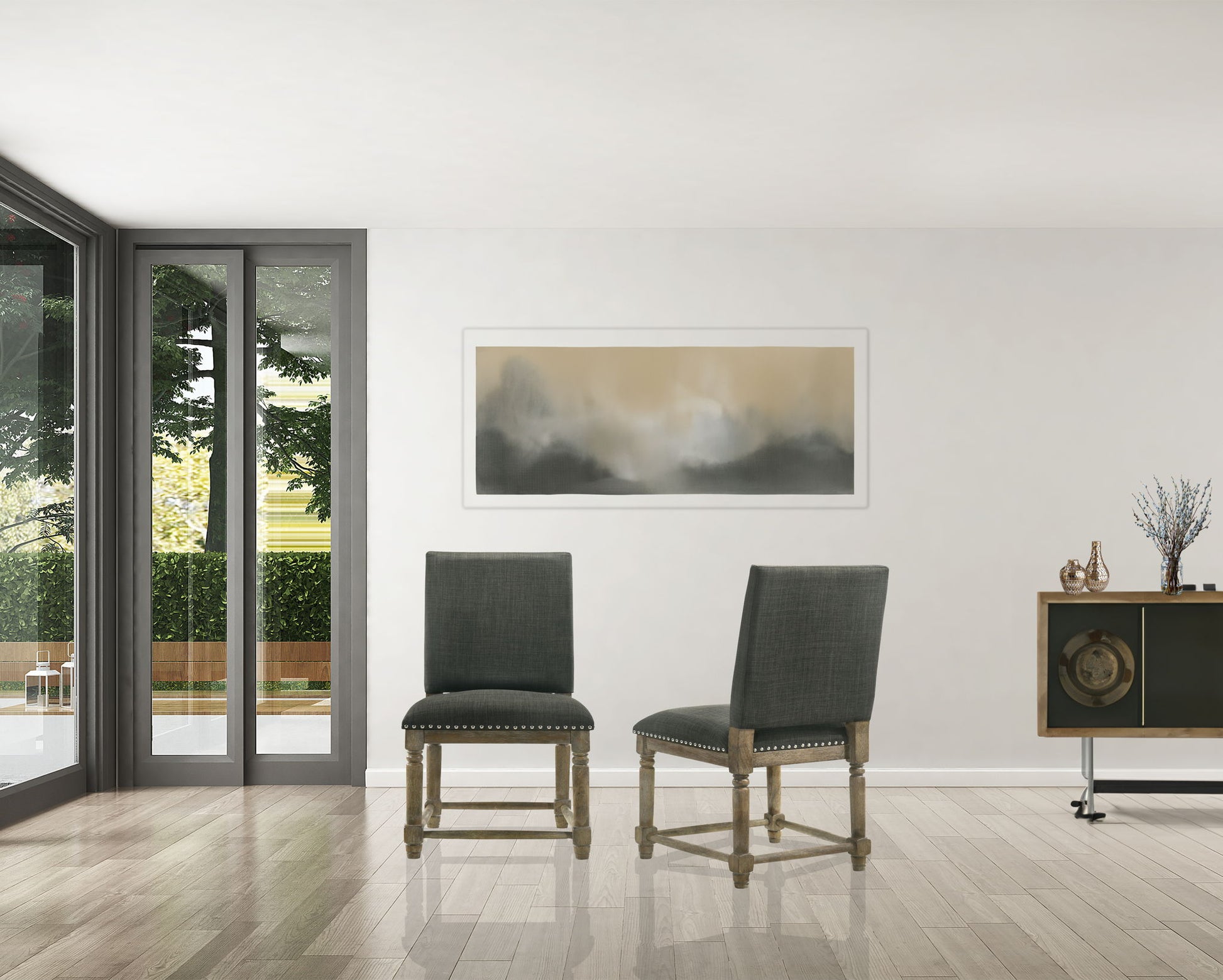 Everton - Fabric Dining Chair With Nailhead Trim (Set of 2) - Gray