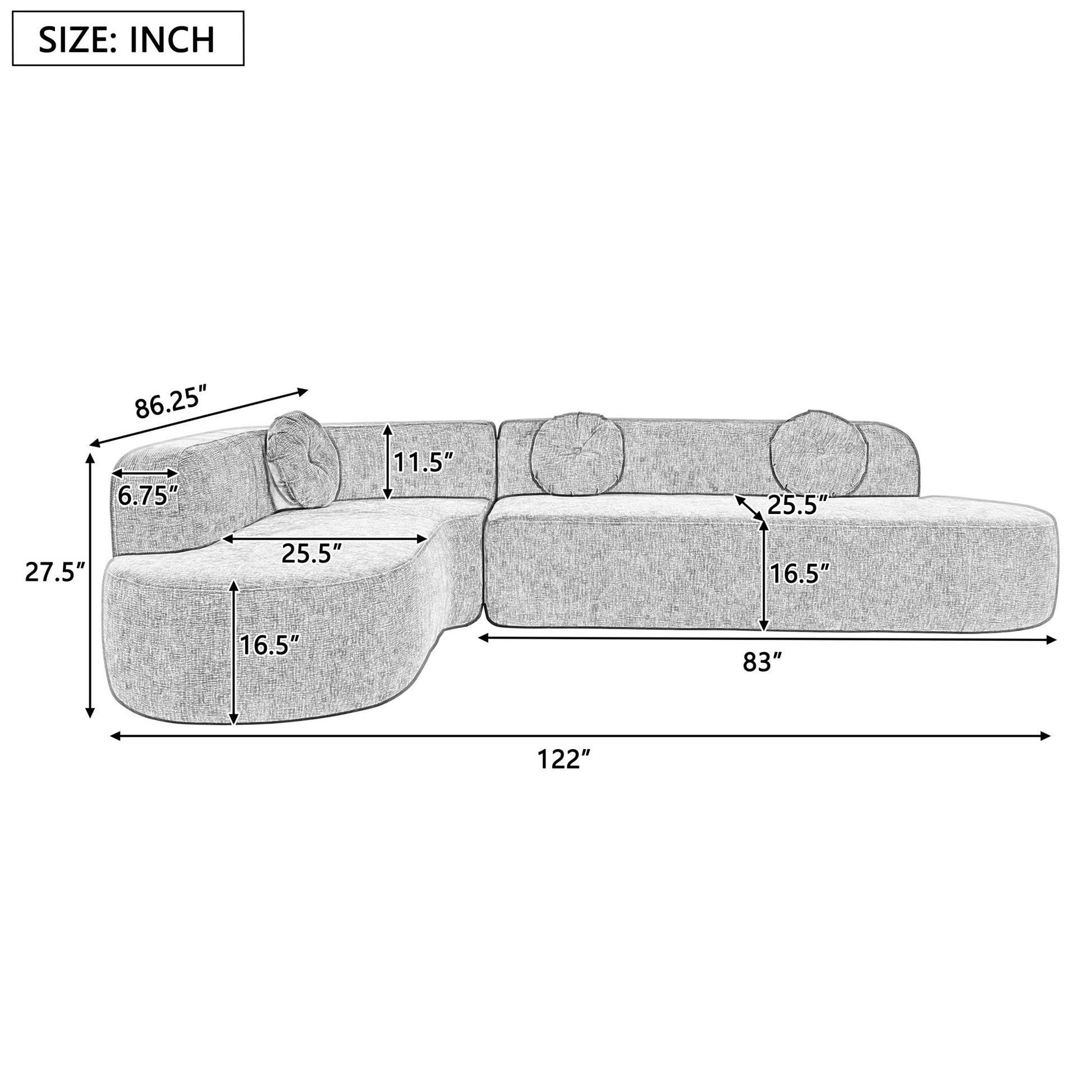 Extra Large Sectional Sofa Soft Fabric Upholstery, Elegant Curved Design With 3 Round Cushions, High - Resilience Foam For Ultimate Comfort - Beige