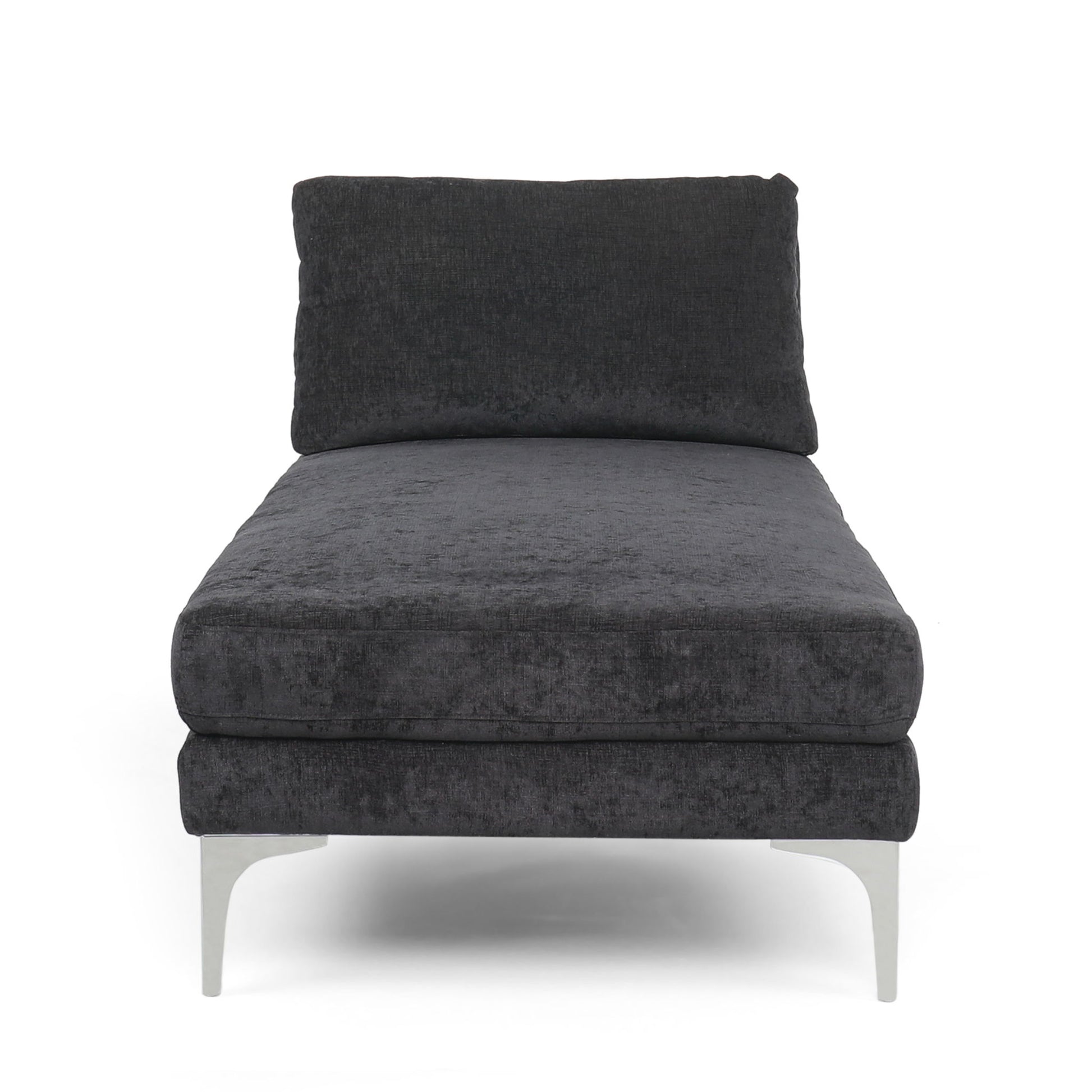 Fabric Upholstered Chaise Lounge With Iron Bracket Legs - Gray
