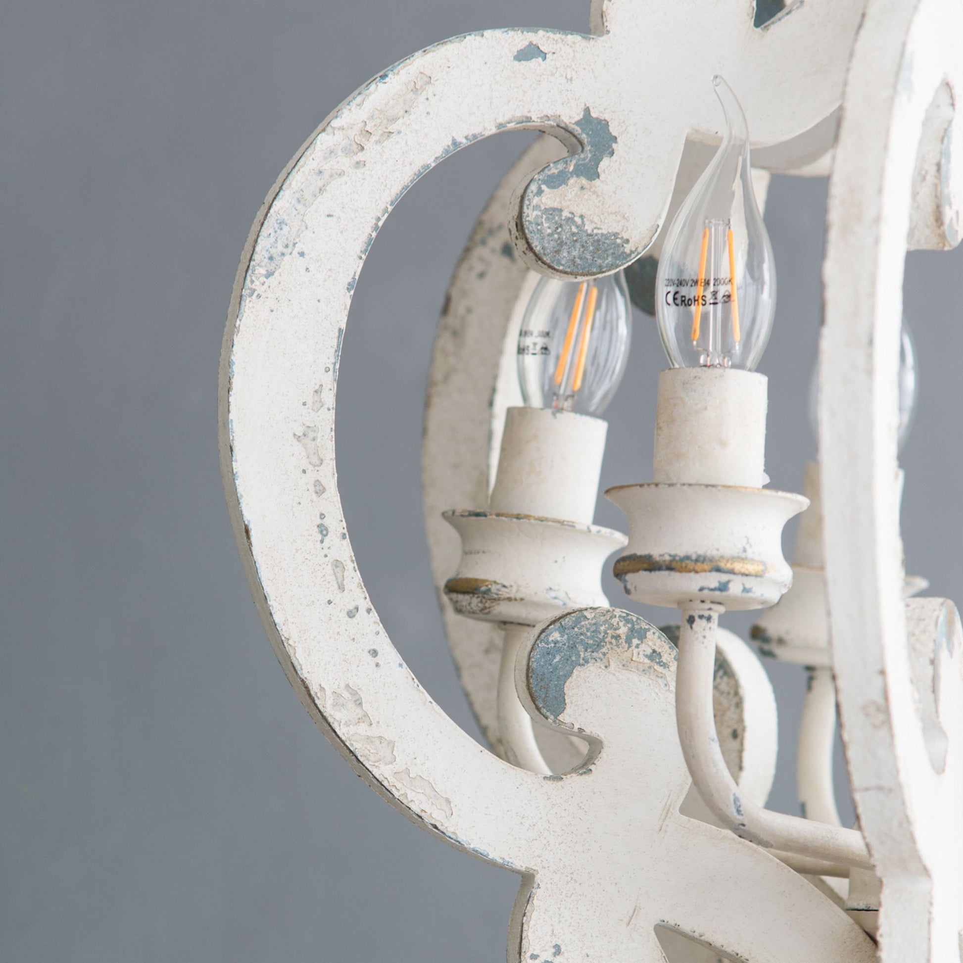 Farmhouse Chandelier, 6 Light Wood Chandelier Pendant Light Fixture With Adjustable Chain For Dining Room Living Room Entryway, Bulb Not Included - Cream