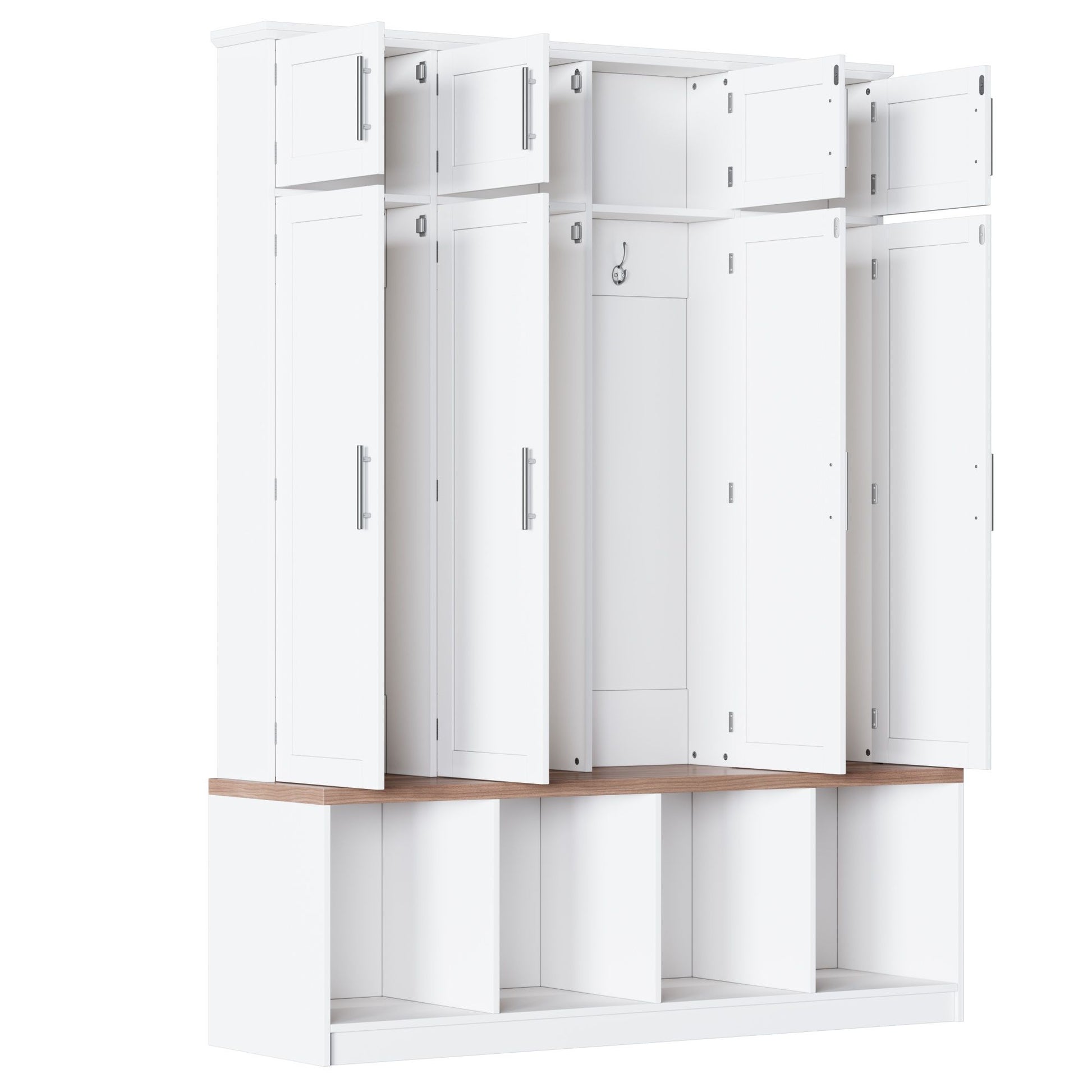 Farmhouse Hall Tree With 4 Hidden Hanging Hooks And 8 Doors