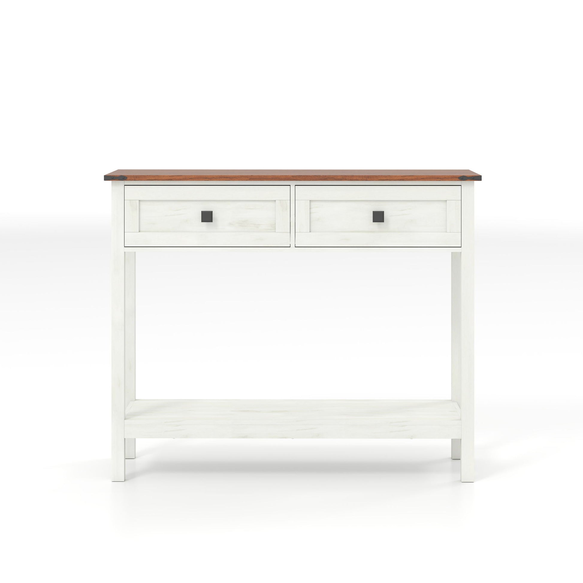 Farmhouse Style Console Table With 2 Drawers And Bottom Storage Shelf - Antique White
