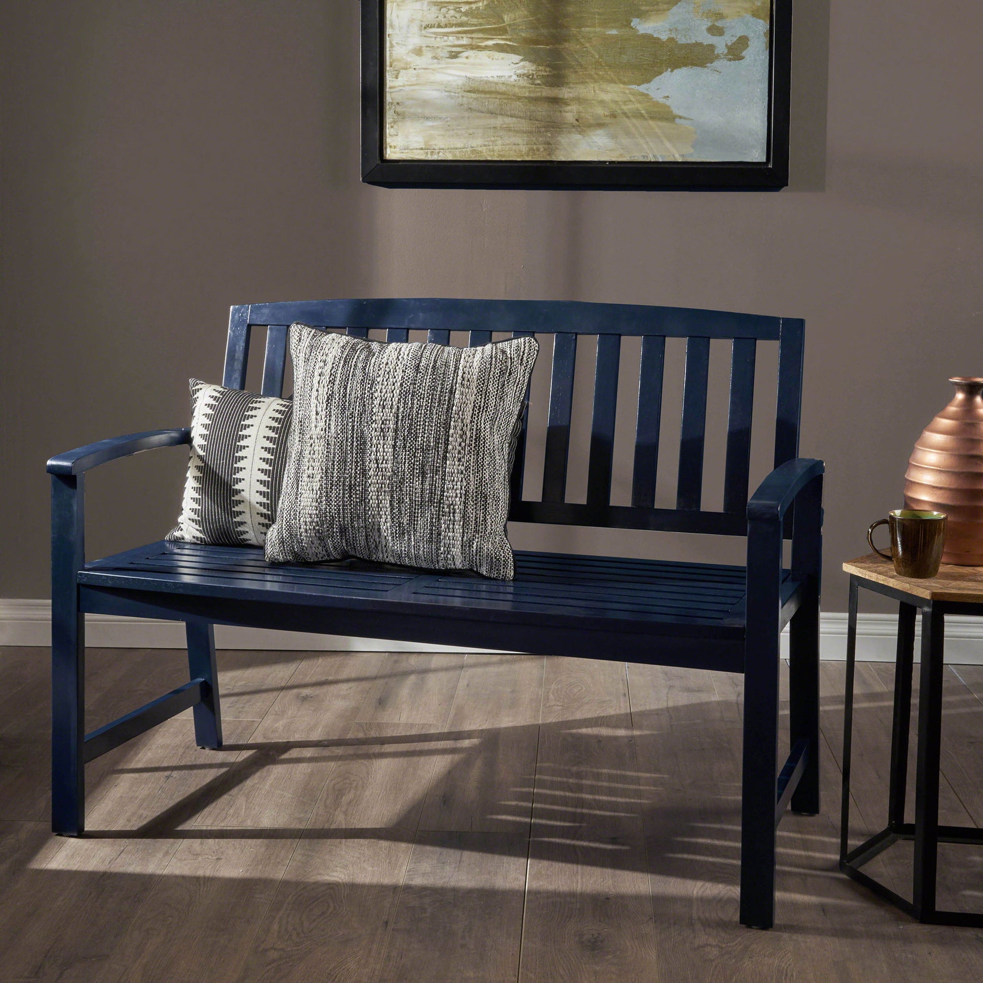 Farmhouse Style Loja Bench Indoor / Outdoor Acacia Wood - Blue