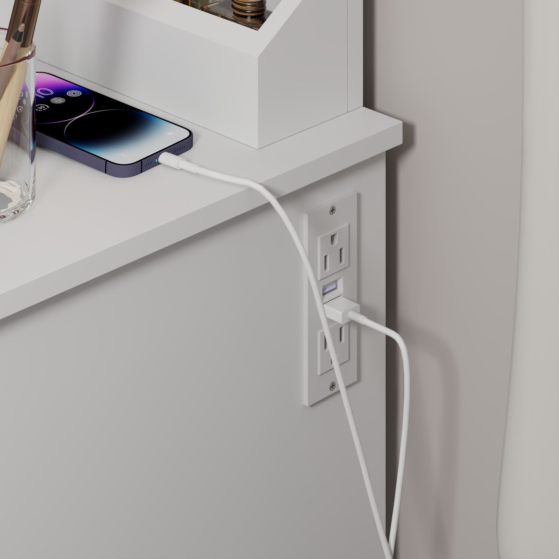 Fashion Vanity Desk With Mirror And Adjustable Lights, Makeup Table Set With 2 Drawers - White