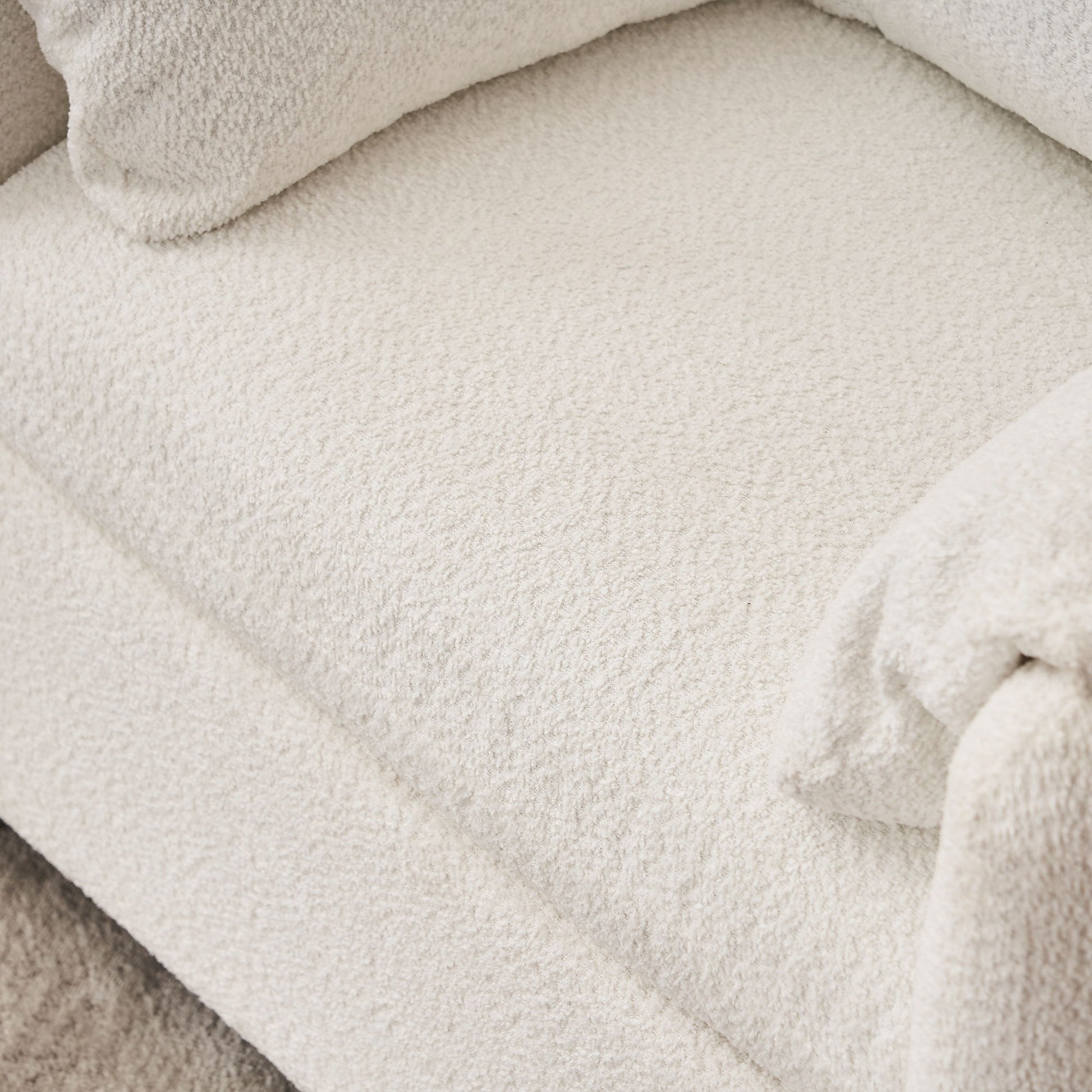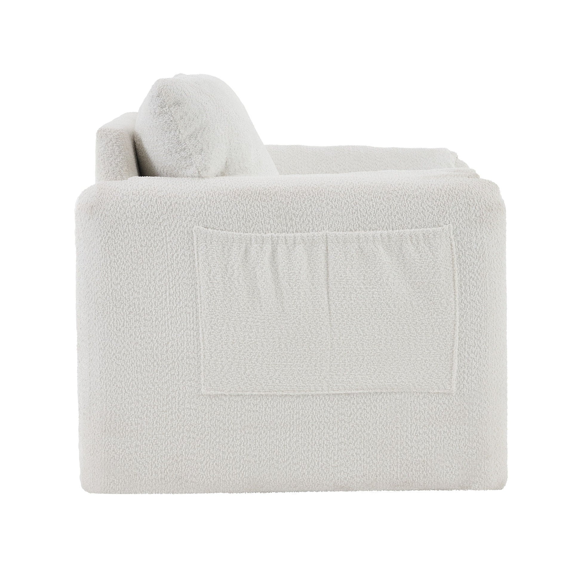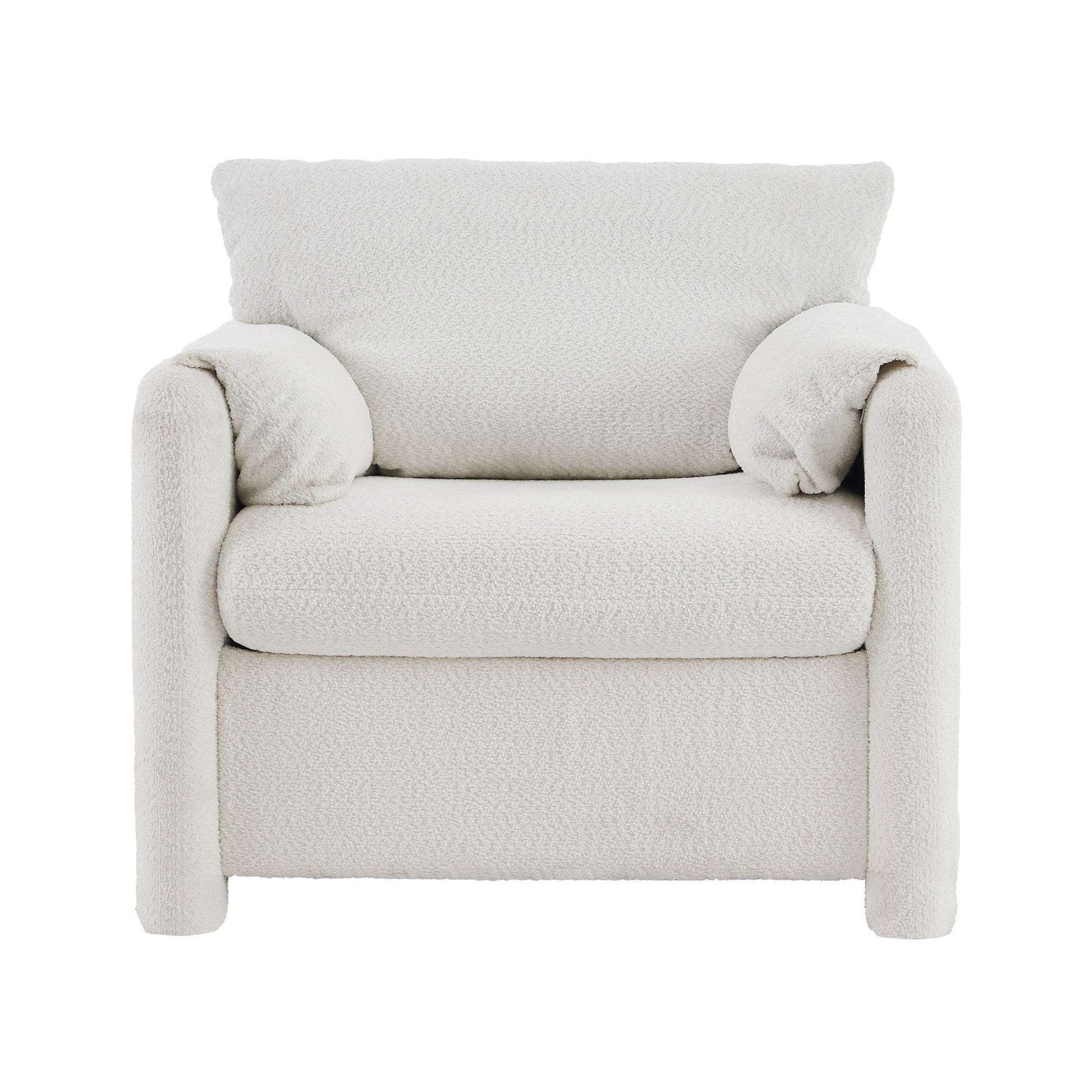Fixed Modern Accent Chair Single Seater Plush Chenille Lounge Chair With High Resilience Cushion - Ivory White
