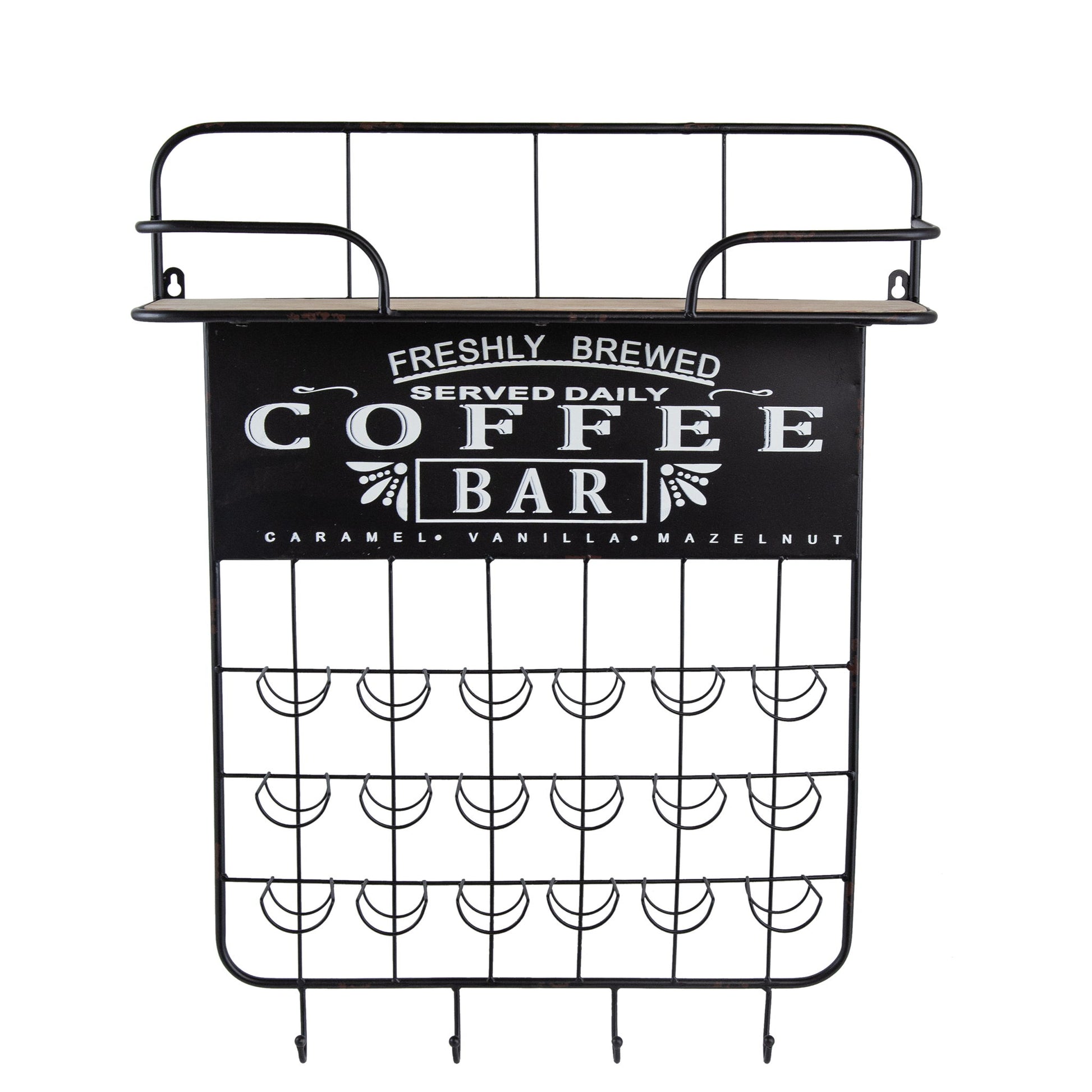 - Multi-Functional Design: This coffee bar shelf features 18 slings for k-cups or coffee pods, four hooks for mugs and cups, and a spacious shelf for storing syrup, sugar, creamer, and a grinder, combining style and functionality.