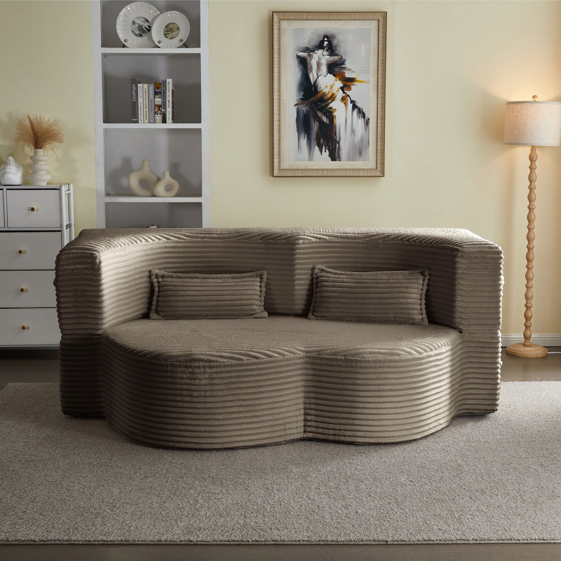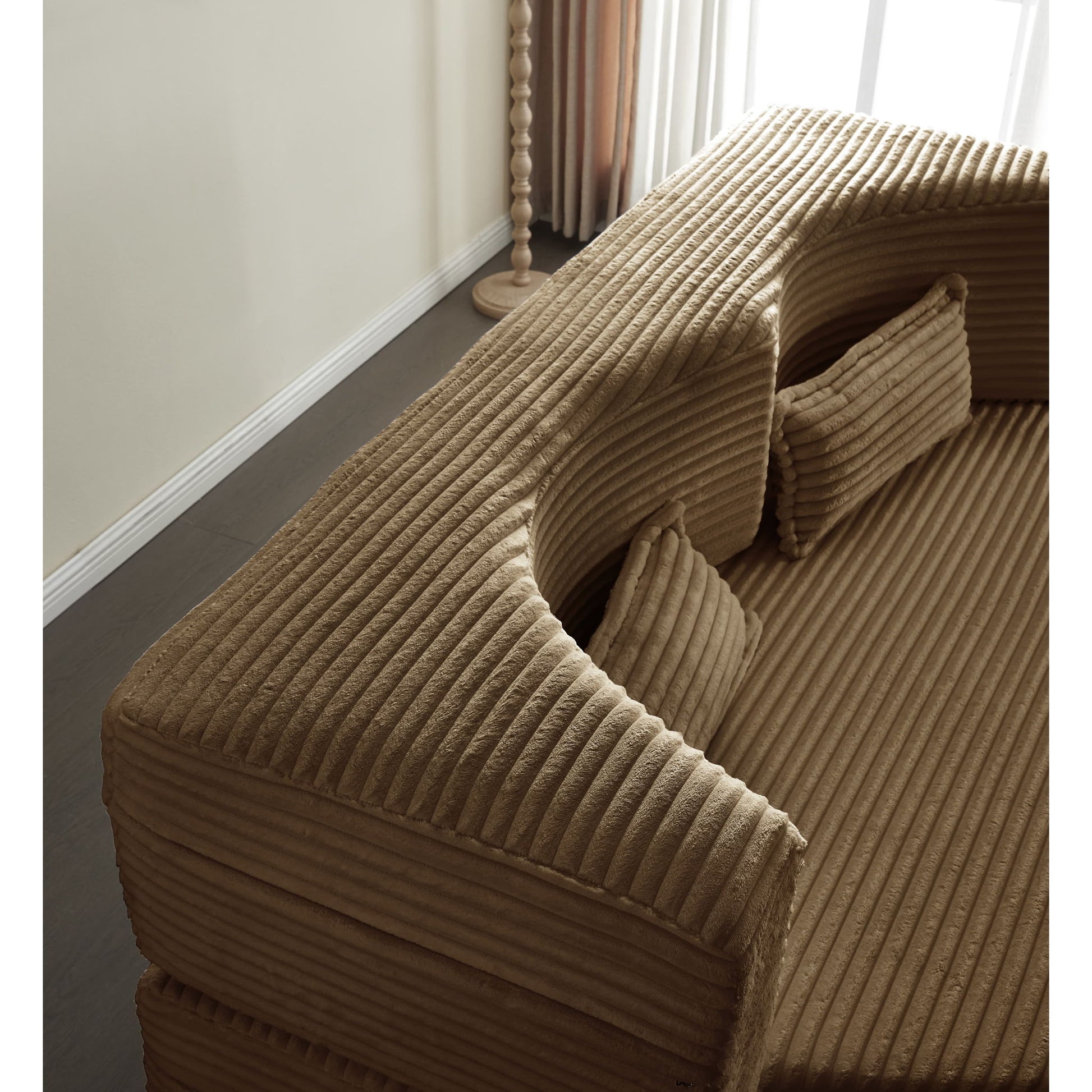 Floor Sofa With 2 Pillows, Convertible Plush Corduroy Foam Filled Sleeper Sofa Bed - Coffee