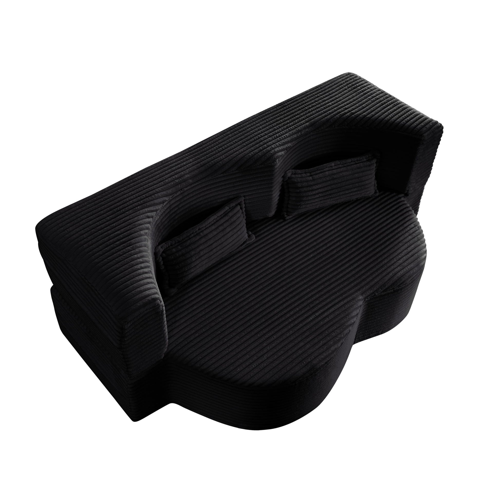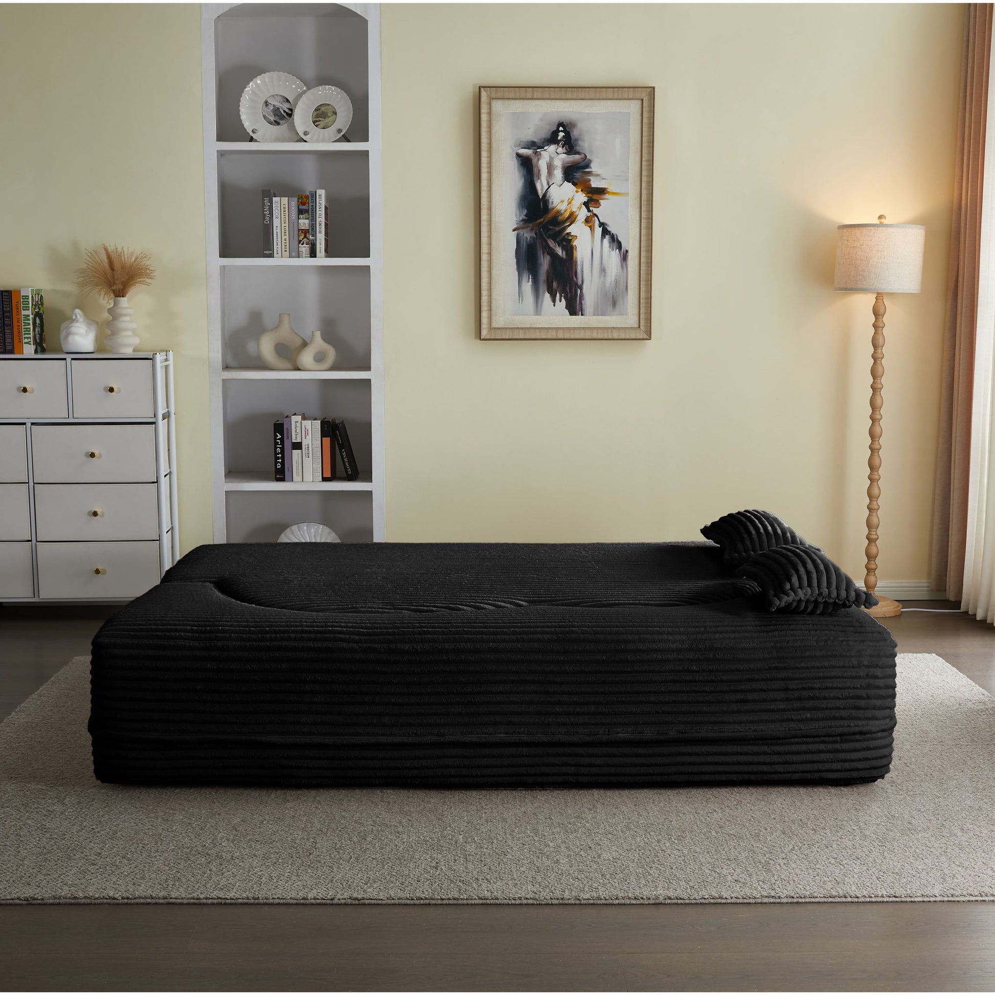 Floor Sofa With 2 Pillows, Convertible Plush Corduroy Foam Filled Sleeper Sofa Bed - Black