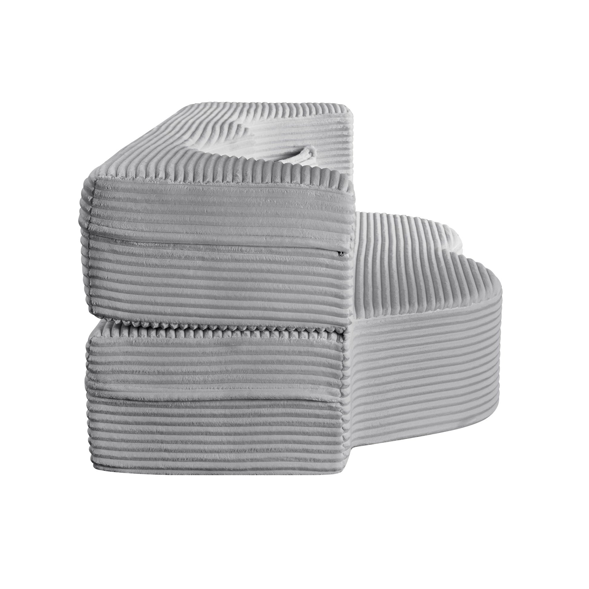 Floor Sofa With 2 Pillows, Convertible Plush Corduroy Foam Filled Sleeper Sofa Bed - Light Gray