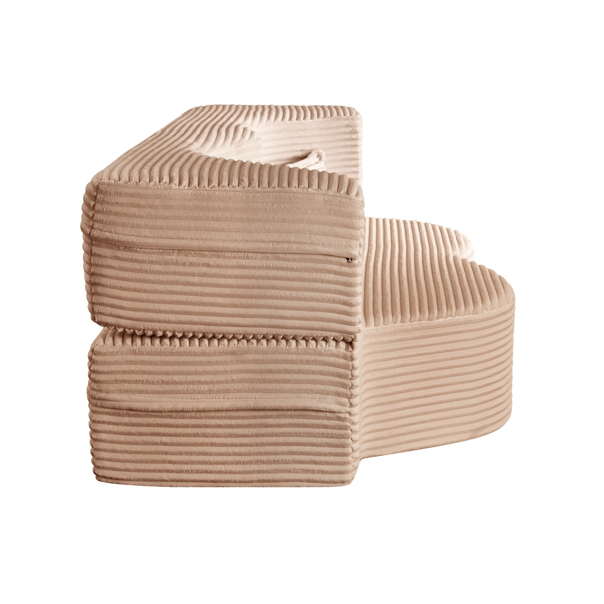 Floor Sofa With 2 Pillows, Convertible Plush Corduroy Foam Filled Sleeper Sofa Bed - Beige