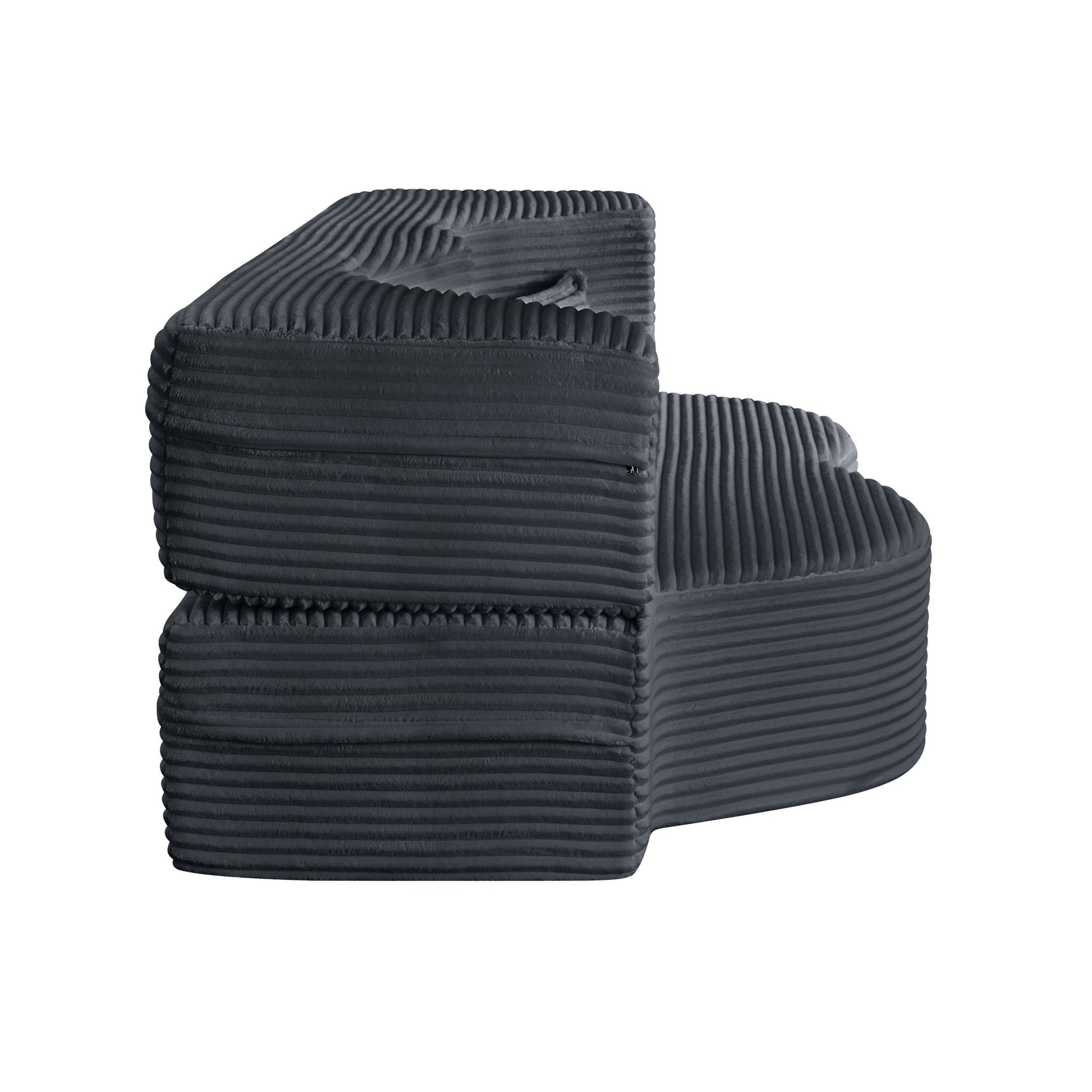 Floor Sofa With 2 Pillows, Convertible Plush Corduroy Foam Filled Sleeper Sofa Bed - Dark Gray