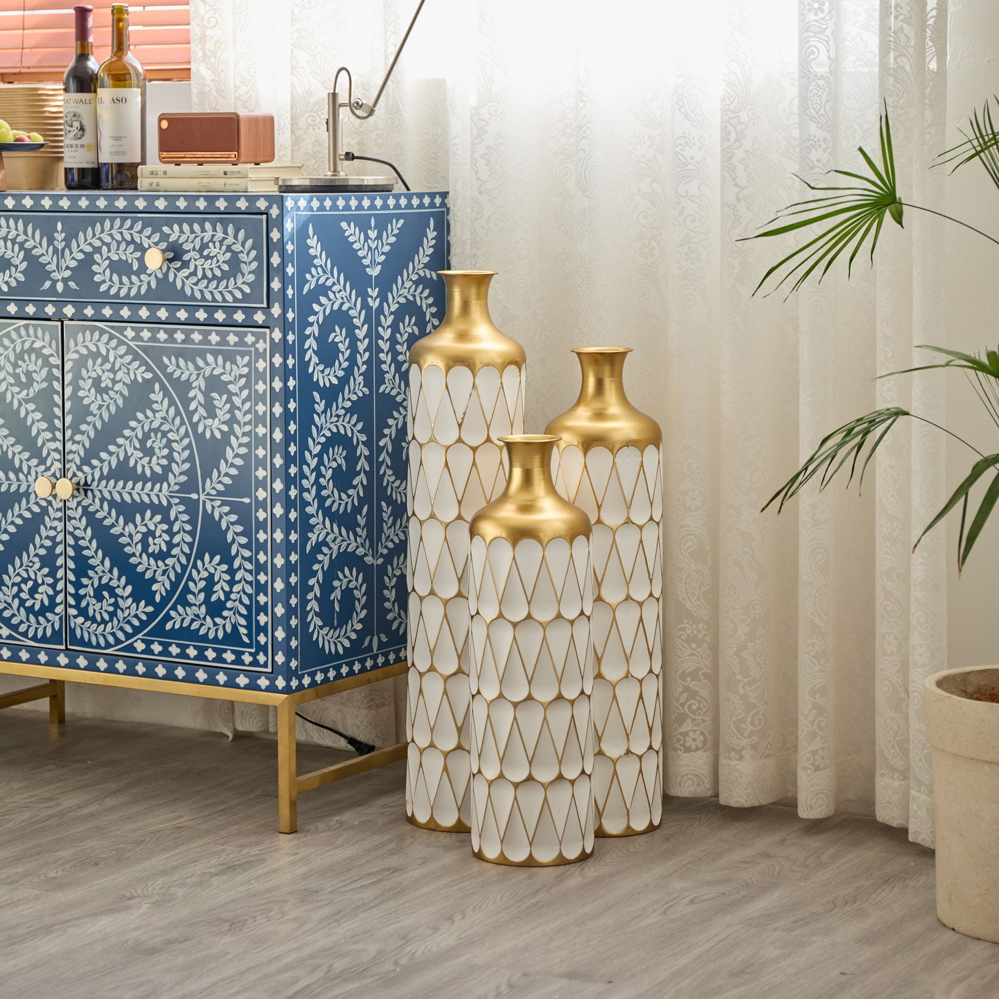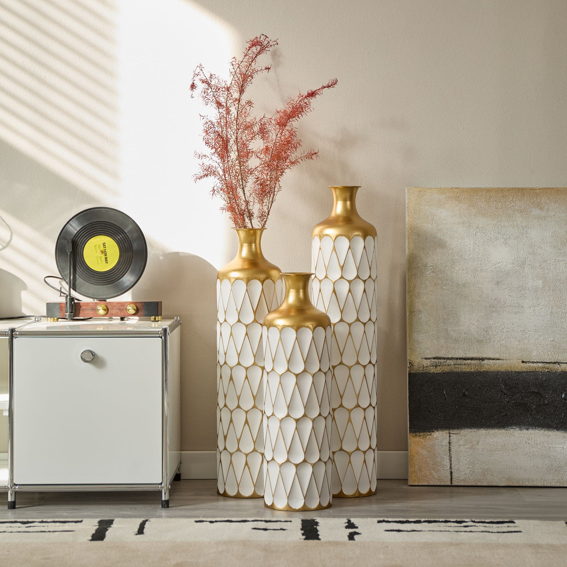 Floor Metal Vase Modern Style Decoration Home Droplet Shaped Metal Vase 3 Piece Set Gorgeous Home Decoration Large Glazed Metal Vase - Gold / White