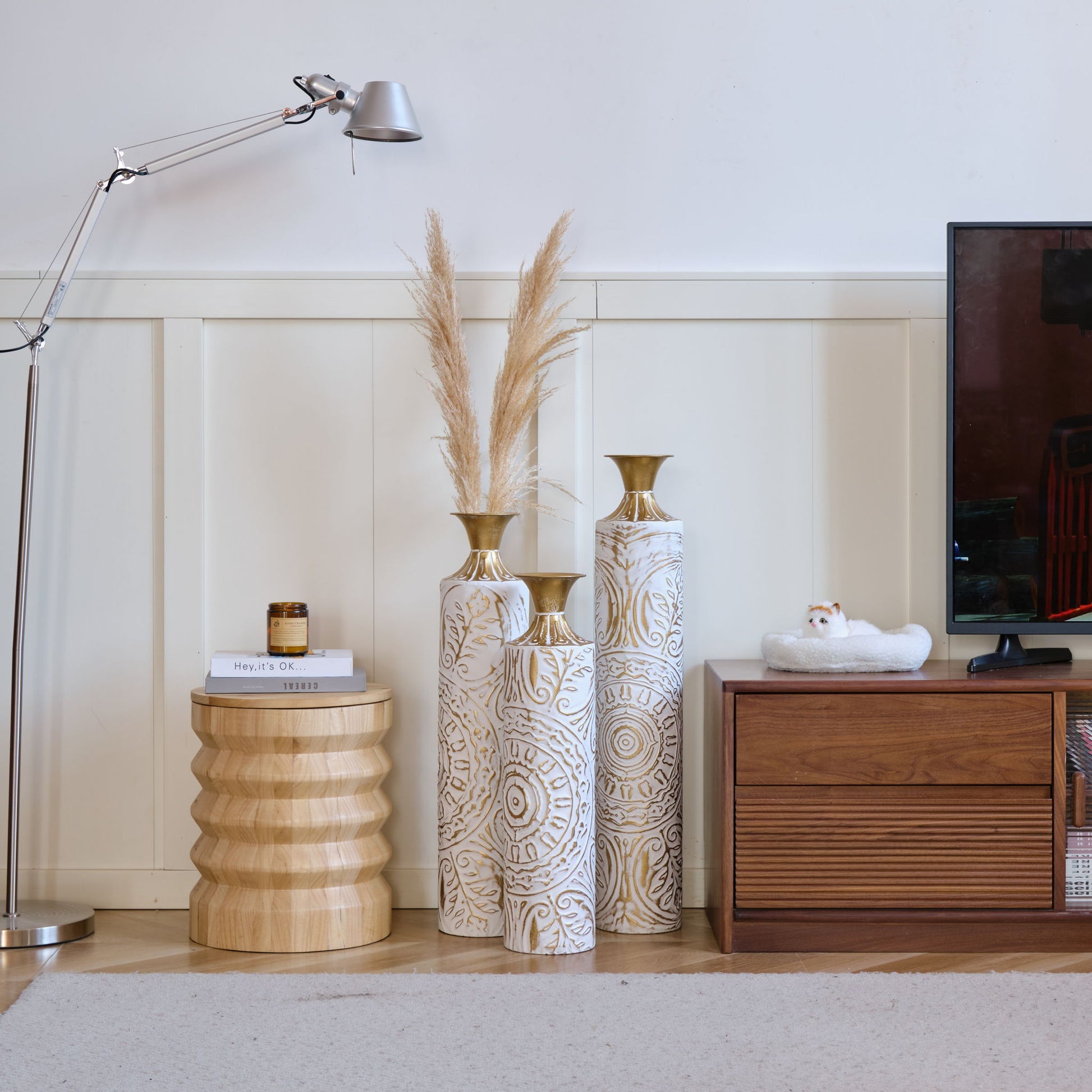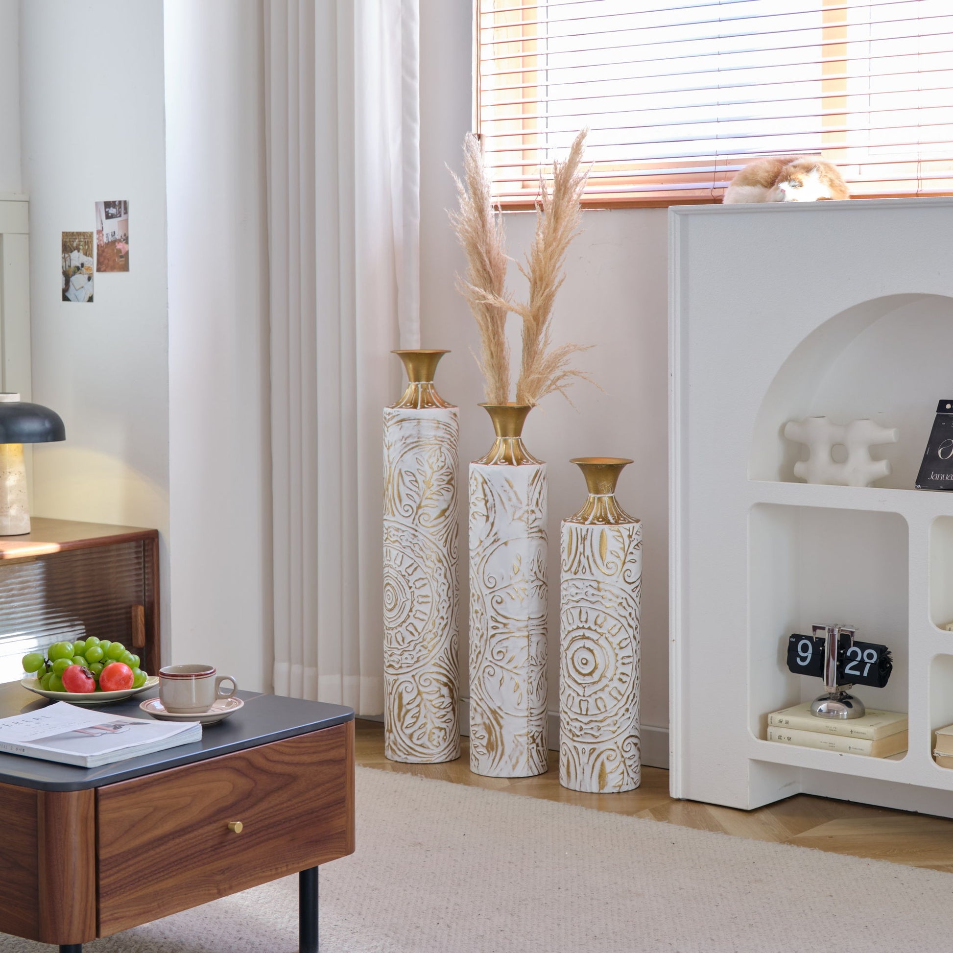 Floor Metal Vases Decorated Metal Vases (Set of 3) Gorgeous Home Decoration Large Glazed Metal Vases - White / Gold