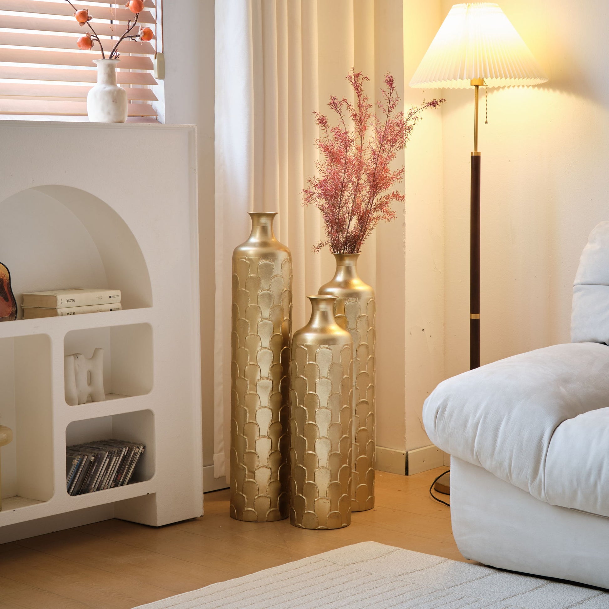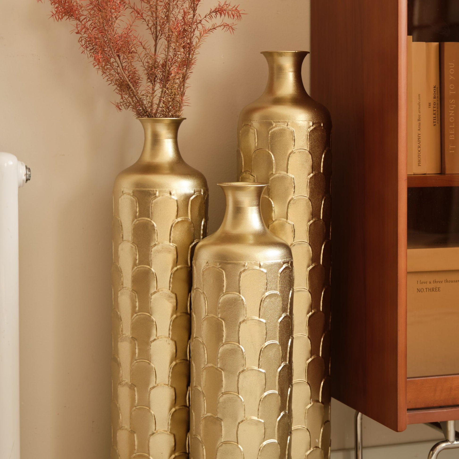 Floor Metal Vases Decorated White Metal Vases (Set of 3) Gorgeous Home Decoration Large Glazed Metal Vases - Golden