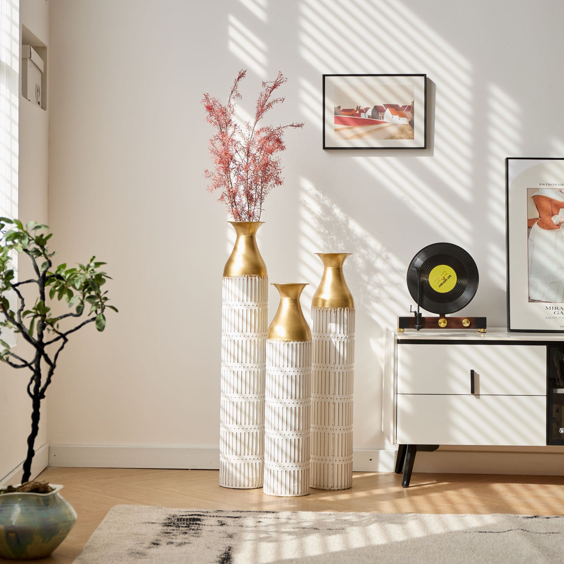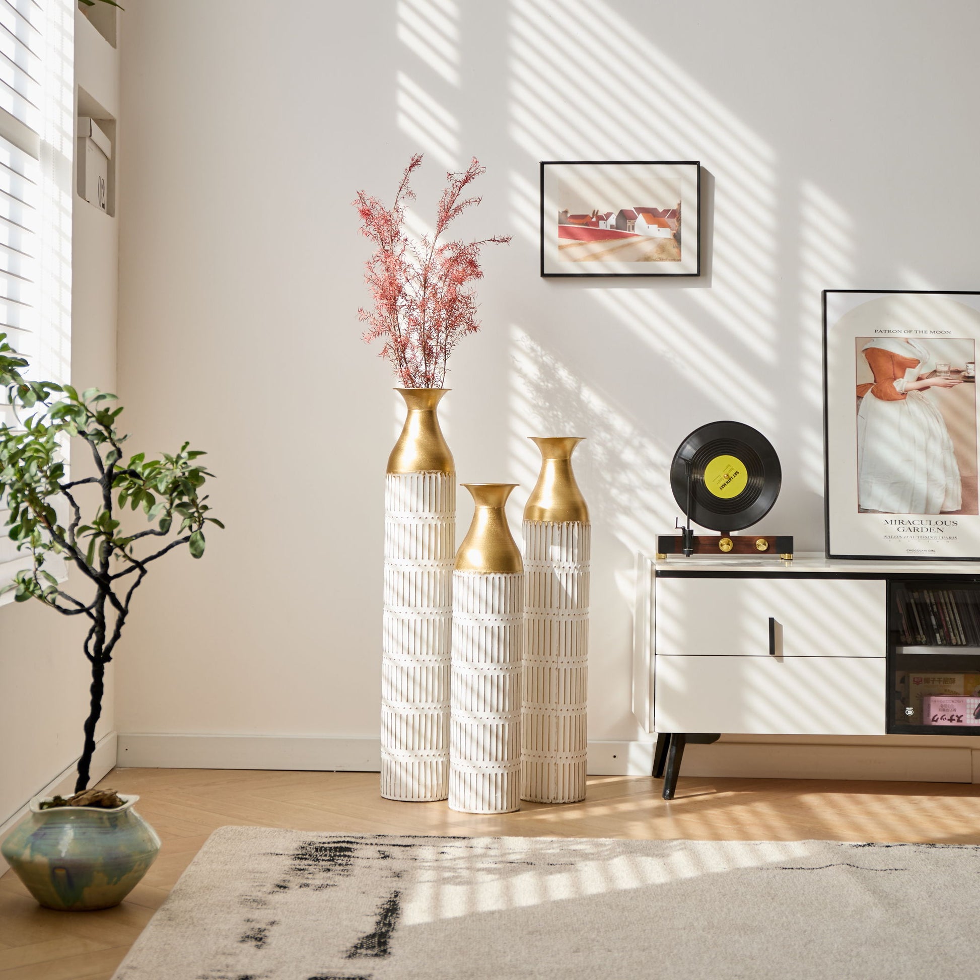 Floor Metal Vases Decorated White Metal Vases (Set of 3) Gorgeous Home Decoration Large Glazed Metal Vases - White