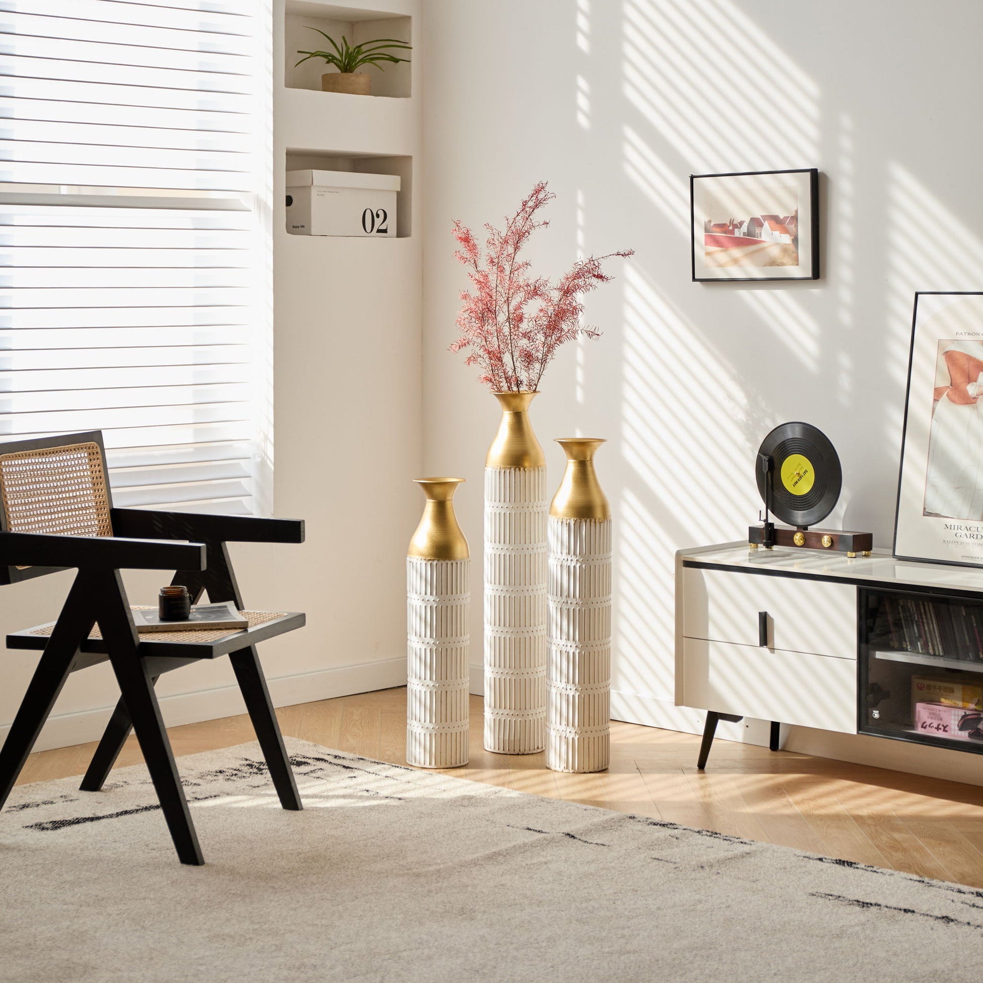 - Versatile Decorative Vases: Perfect for various home settings, these tall metal vases serve as striking standalone décor or a stylish base for floral arrangements.