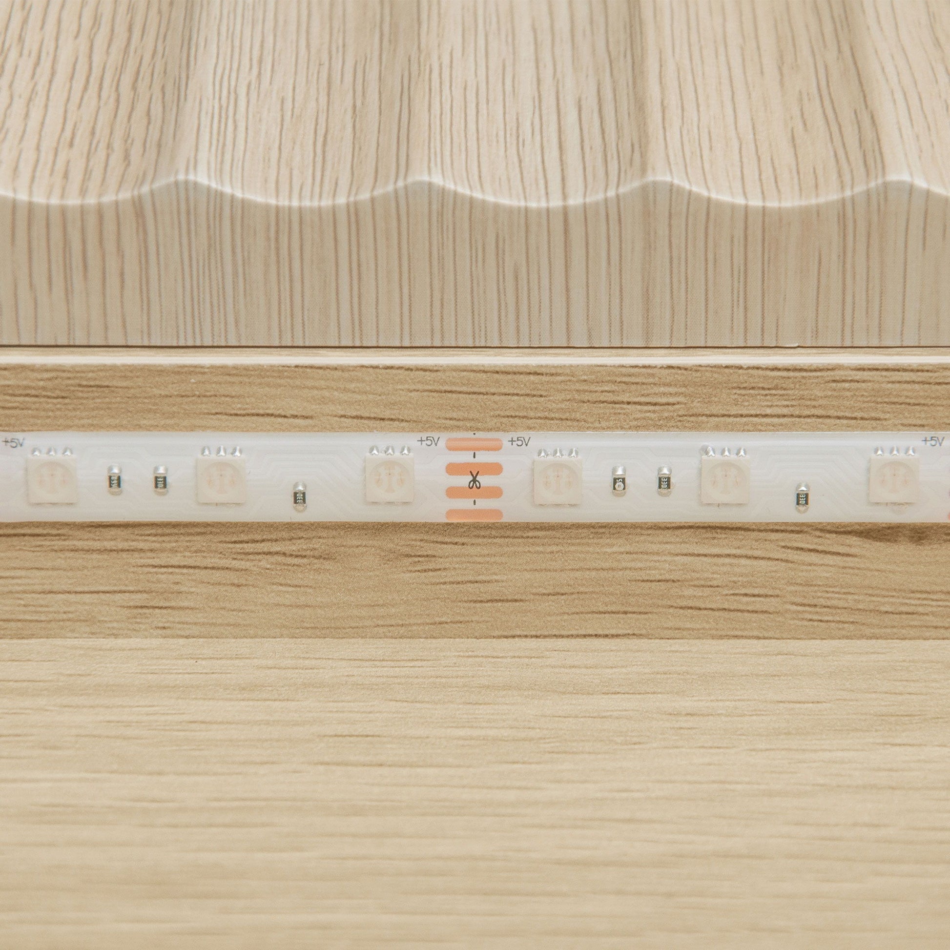 - Elegant Fluted Design: Features a unique wave-like fluted finish that reflects light beautifully, creating dynamic visual effects and enhancing spatial texture. The natural wood tone paired with a white marble-patterned top adds sophisticated charm.