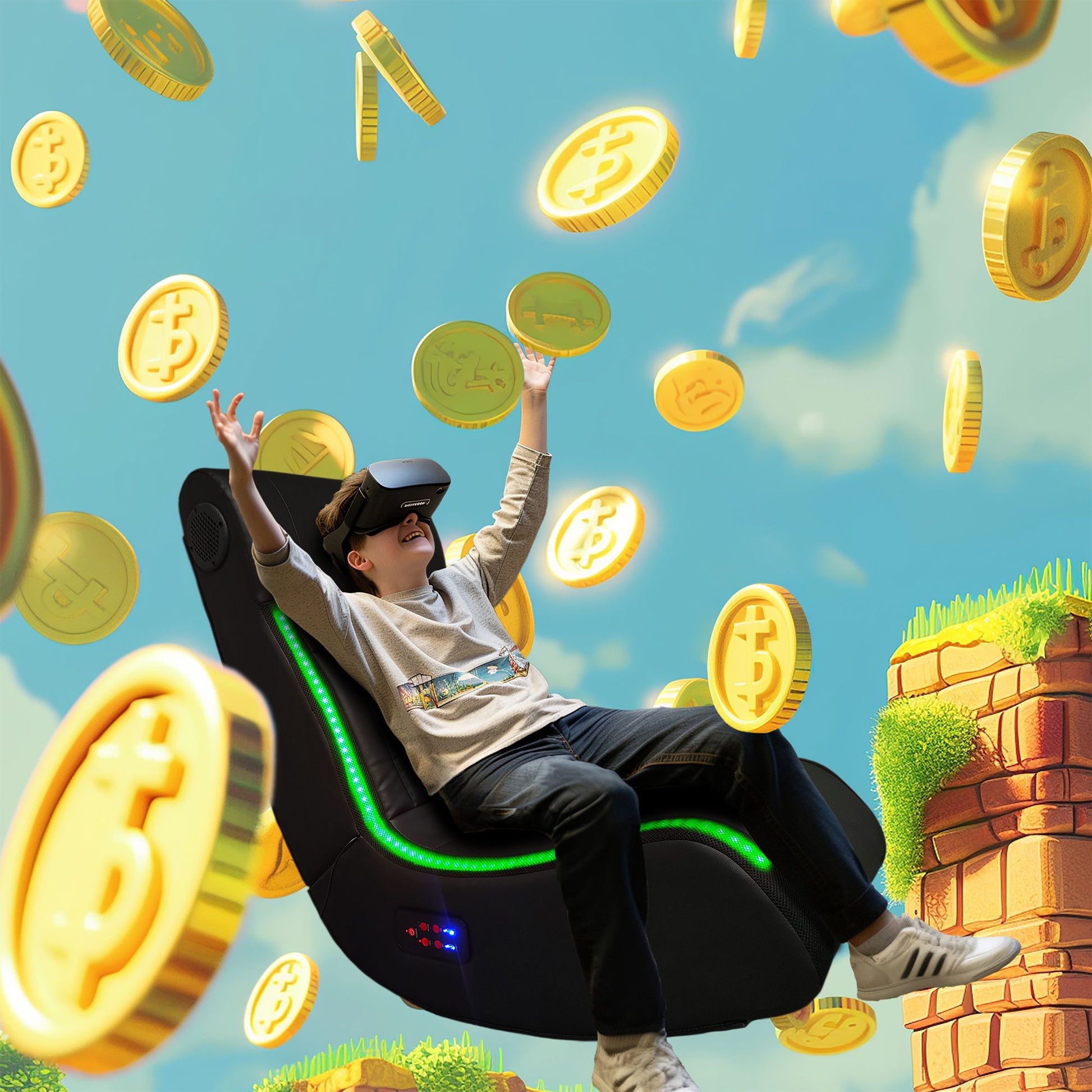 Foldable Gaming Chair With Onboard Speakers, LED Strip Lighting, Bluetooth, Vibration Massage, USB Charging Port - Black